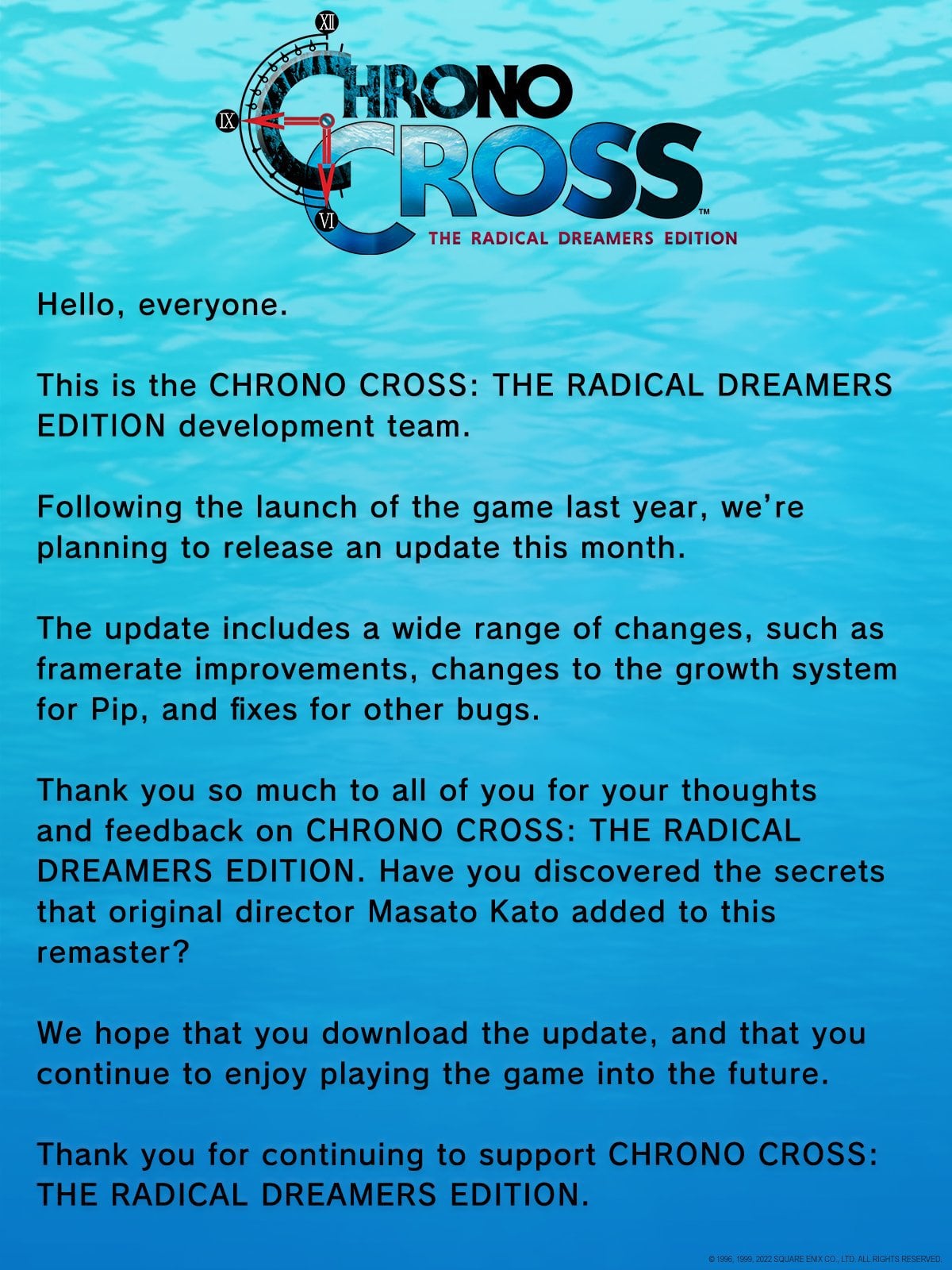 Chrono Cross get a update soon.