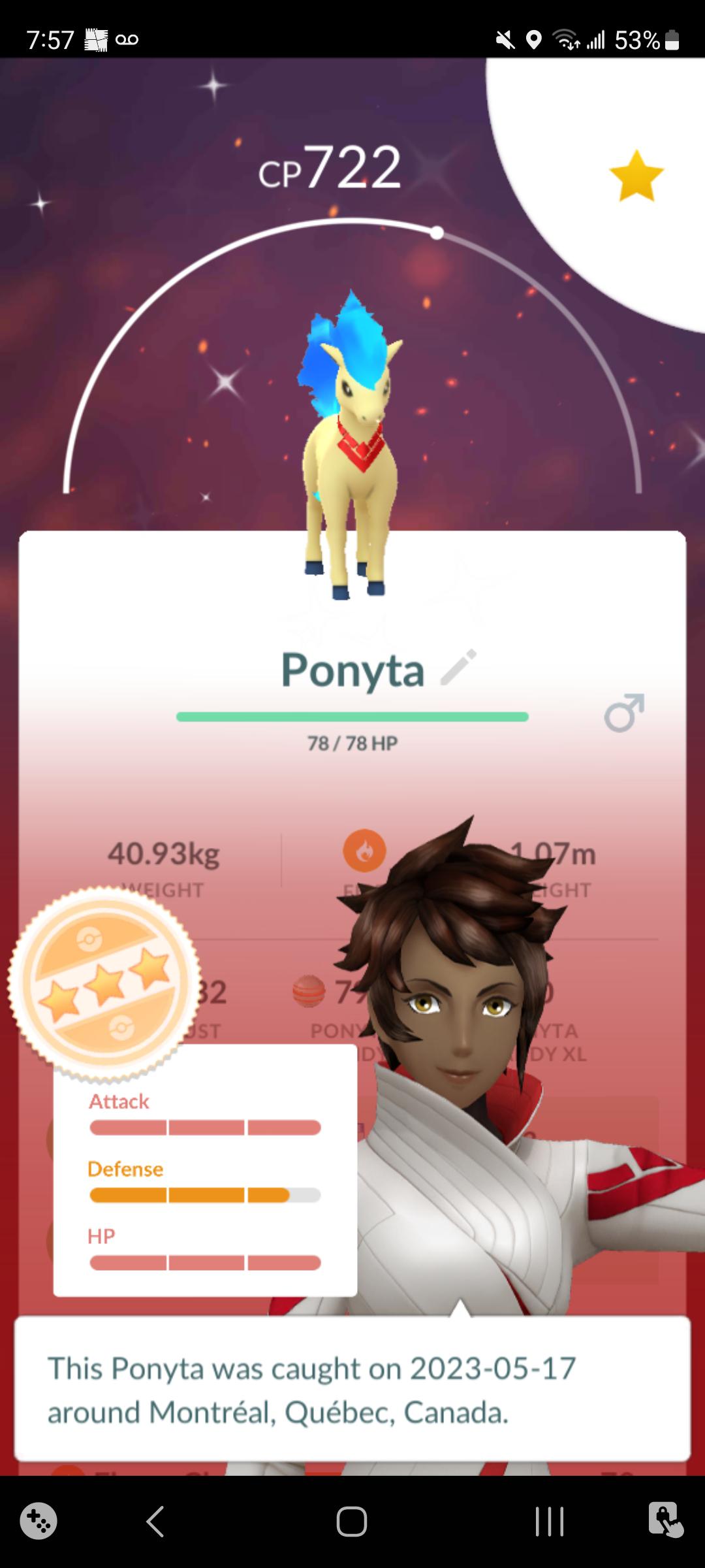 FlavorfulHades 3 years ago Congrats! I’m so jealous shiny Ponyta is one of my favs, especially with the costume. Mine was a measly 2* 🙁