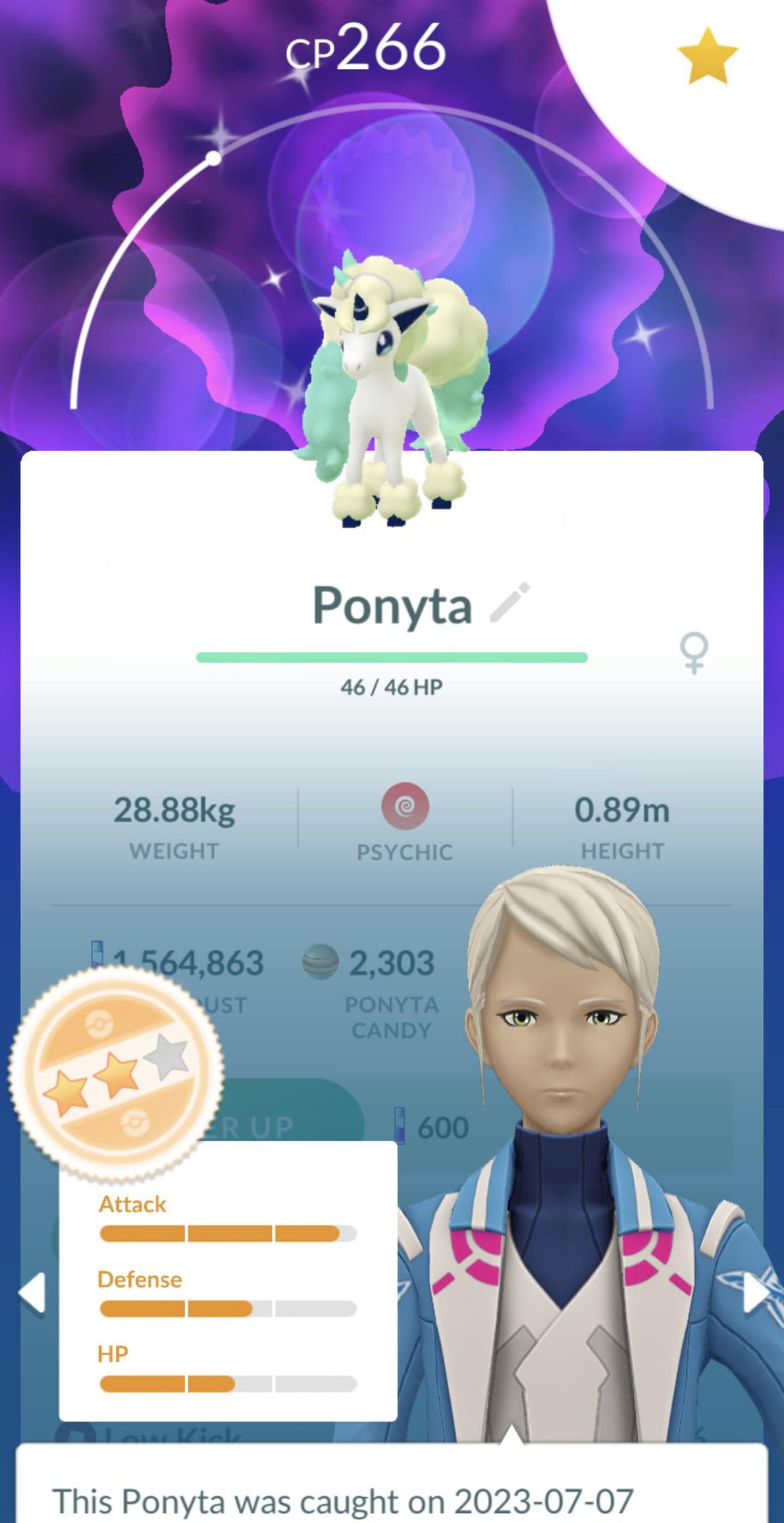YoungDaggerDawg 3 years ago Hey yesterday I caught a Shiny other version of Ponyta with pretty similar stats.