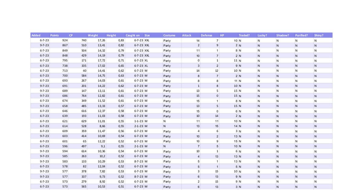 EDIT: Community Day Catches added! 259 rows!