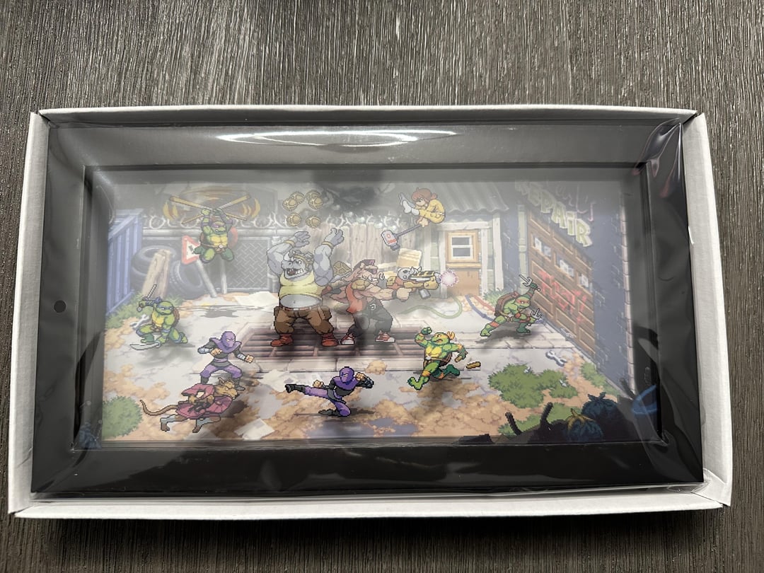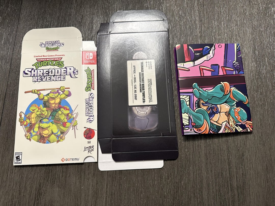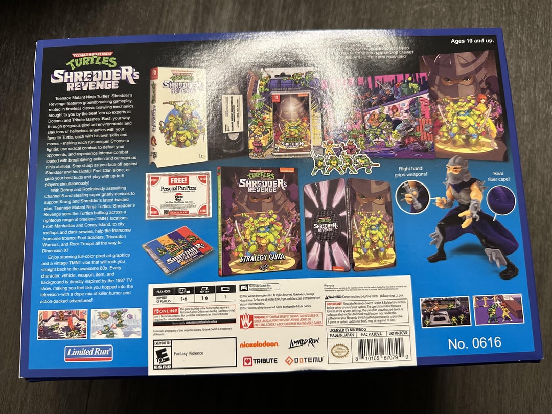 God DAYUM yall just got it now? I got the one where it’s the steel case, game, some cards, the VHS tape box and that took about 6 months after release to arrive. I never ordered from LRG before and after waiting that long, I think I’ll pass on them. Happy that you got it though, it looks like it’s worth the wait. Those are some sweet looking swag. I grew up in the early 90’s during turtle mania and had the Donatello figure. The artwork and styling pays proper homage to the original toys. I was surprised to even have the Pizza Hut coupon like they had in the NES TMNT Arcade game.