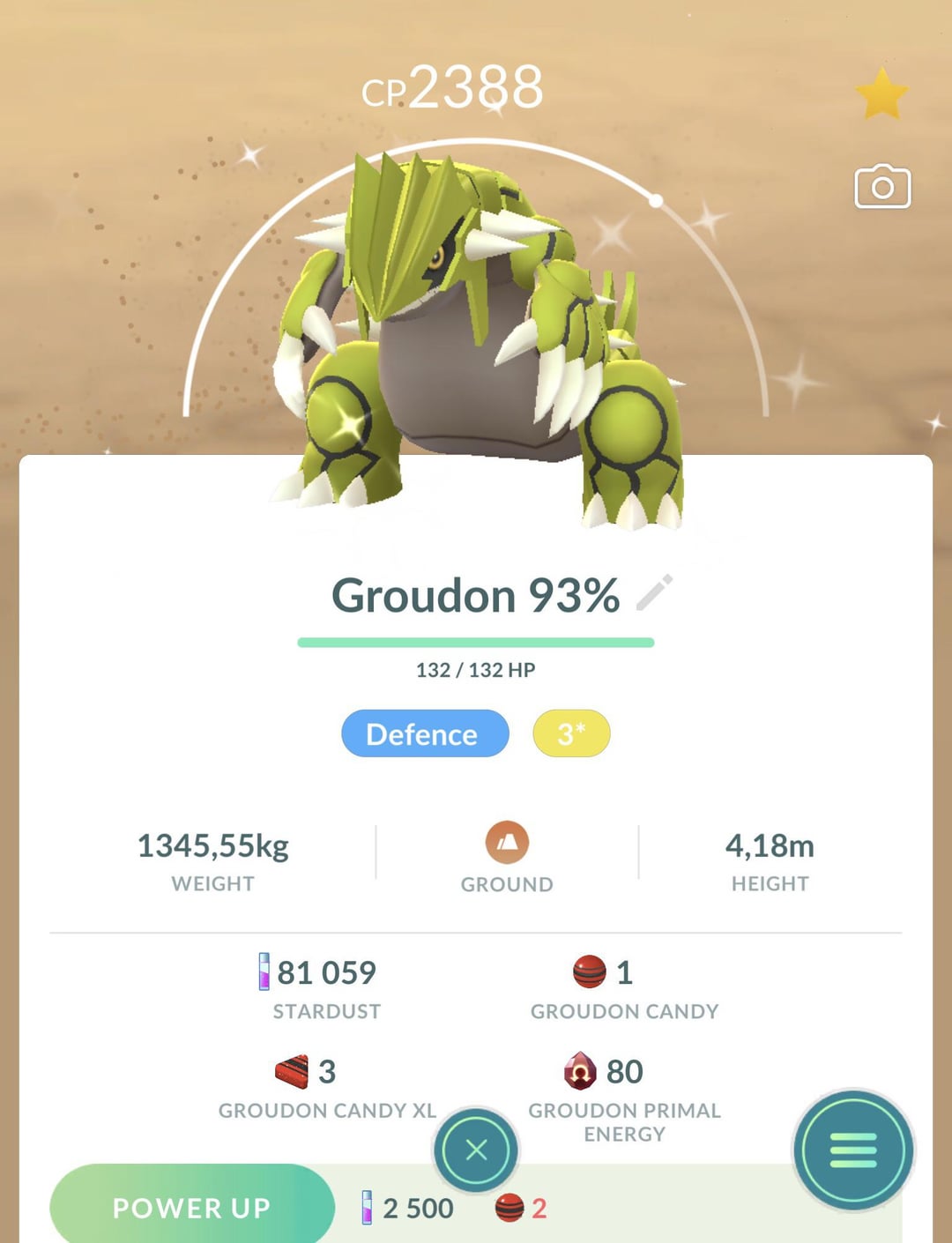 My first shiny was a Groudon! From when were still end of the week field research rewards. I actually had 2 shiny Groudons, but I gave one to my husband. His shiny luck wasn’t as good as mine back then, and Groudon is his favorite Pokémon.