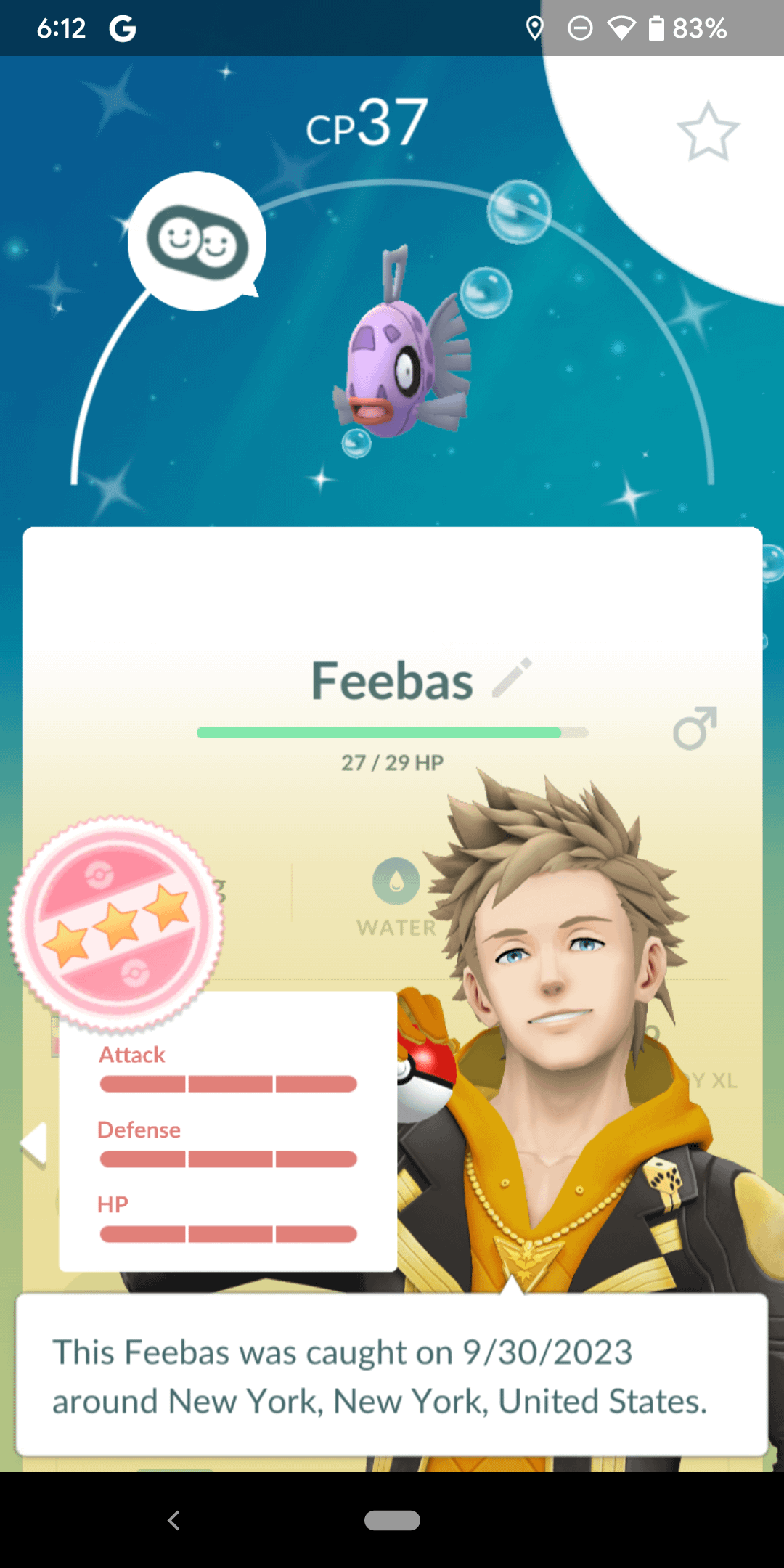 I got two shiny Feebas today as well! When out doing Zapdos raids, I got a shiny Feebas and when pulling back into the driveway I got another! Then, when walking to another Zapdos near my house I got a shiny female Eevee! All of them are trash IV, but I’m happy I got them!