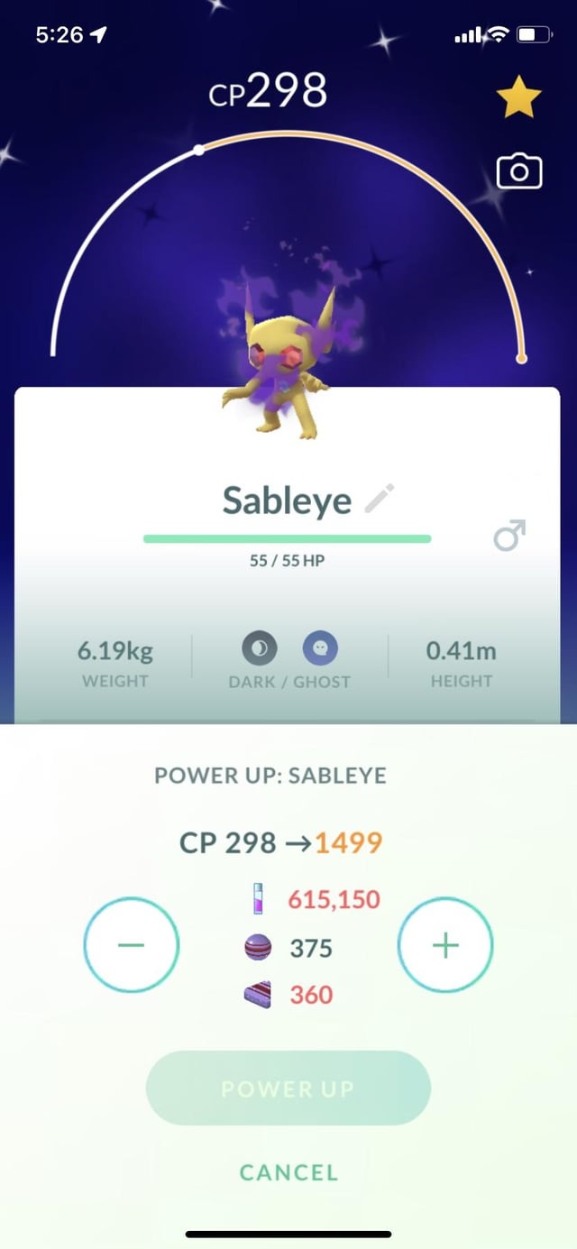 GBL wants specifically a purified Sableye so that it has Return as a charged move. This guy’ll be a fantastic pvp sableye when purified. It’ll take 199 XL candy to level it up properly