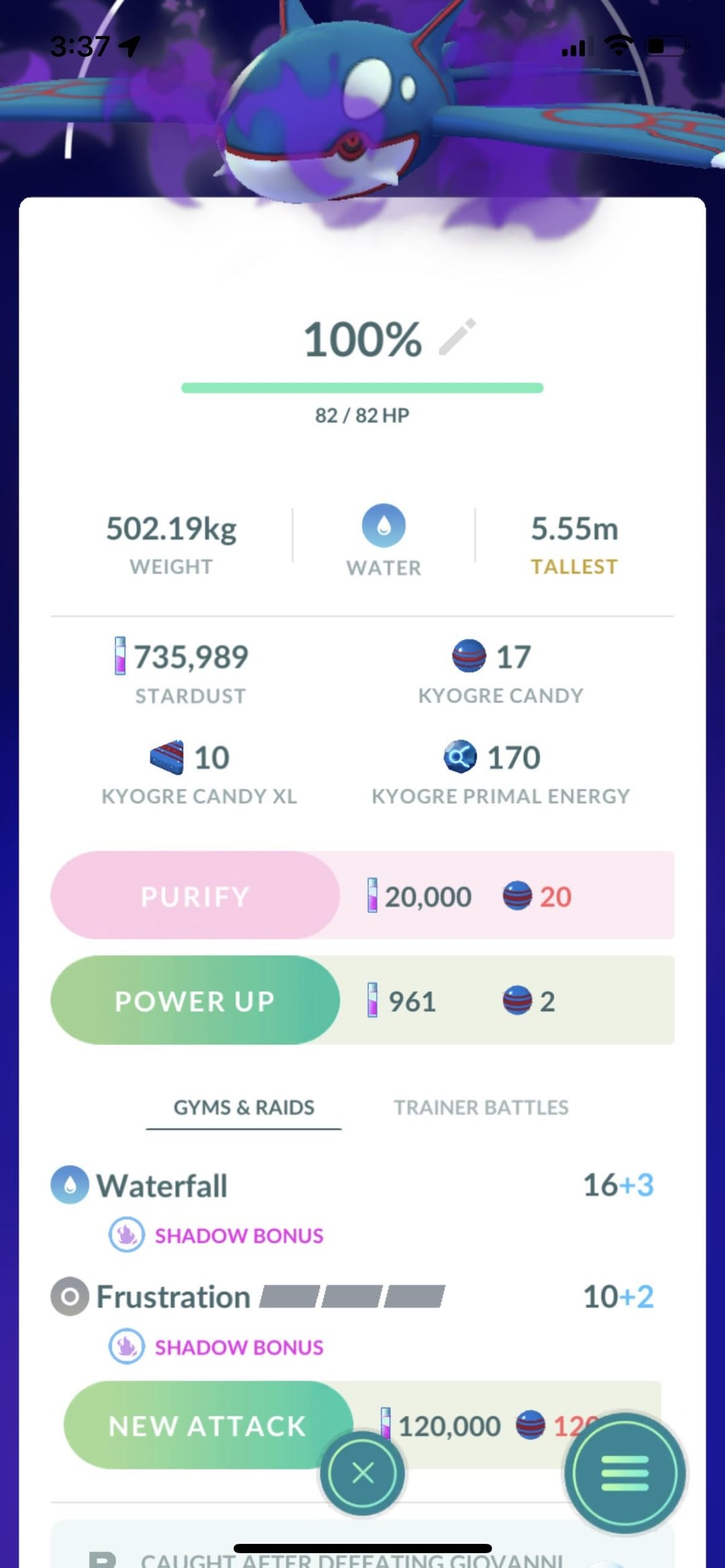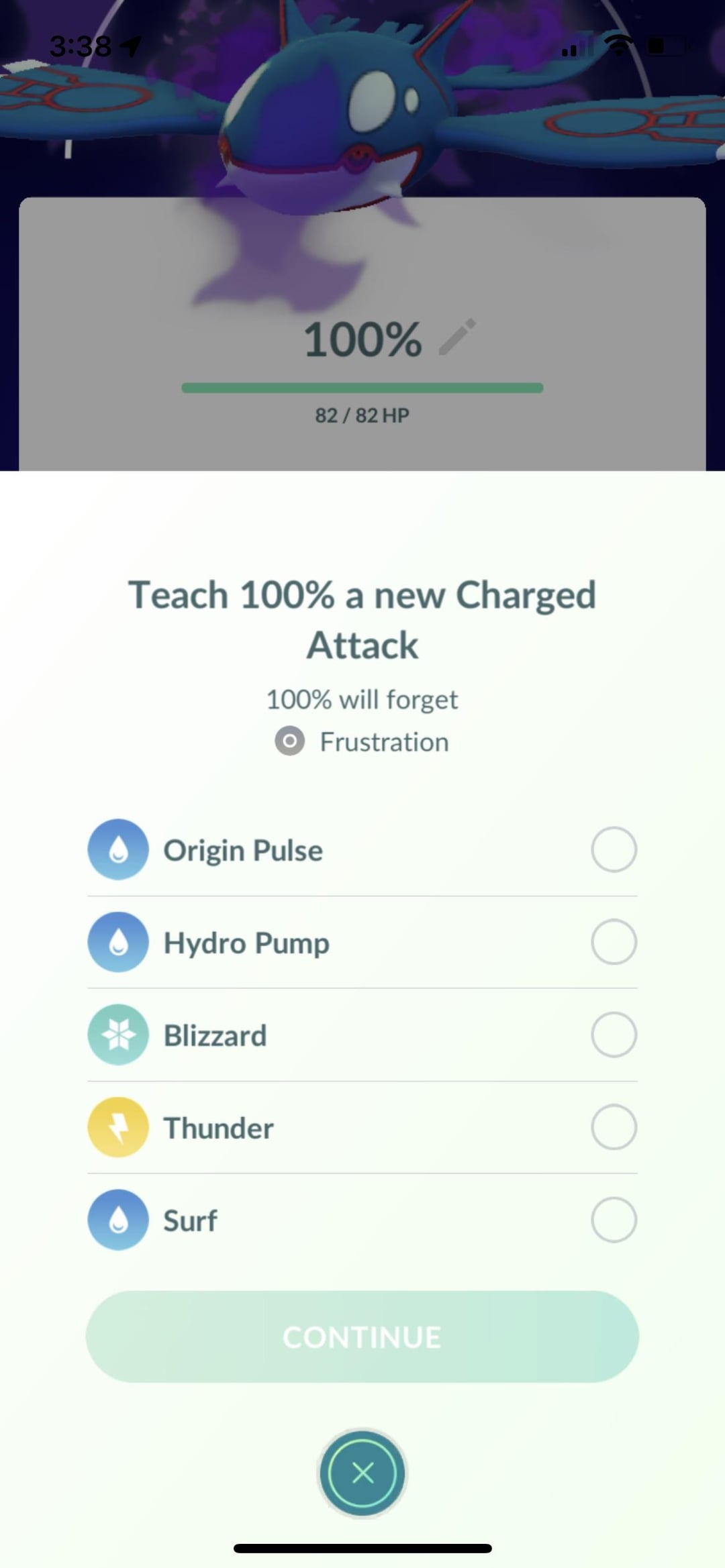 I’ve tried using a charged move TM to replace frustration with preferably origin pulse, but it keeps displaying the “cannot be forgotten” notification. I really want to change Kyogre’s charger move, but I don’t know how. Help!