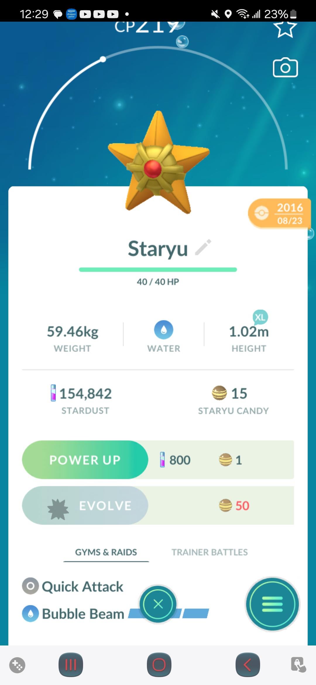 Staryu with quick attack is rare?