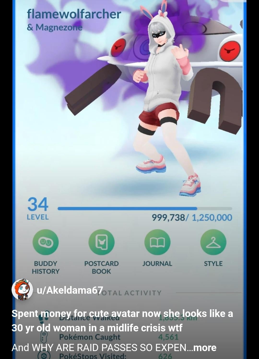 Some people physically can’t go outside a lot either, so making going outside more rewarding can be better for people’s health and the health of this game. In 2020, I almost lost my leg; thankfully, it was more accessible to play Pokémon GO 2020 indoors. I had to relearn how to walk so I wouldn’t be able to get many rewards, items, coins, etc. I’m just now walking about 5km a day, and it’s 2024; I would’ve liked a more friendly game encouraging to walk more by rewarding players but more accessible to play while not losing its charm/actual rewarding feeling.
