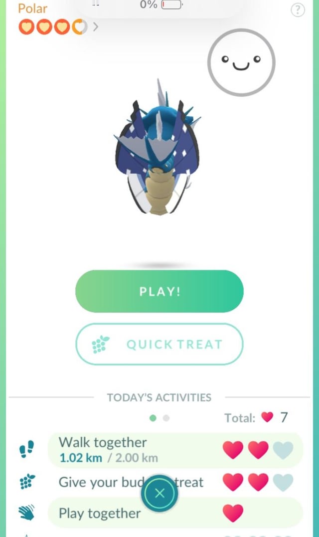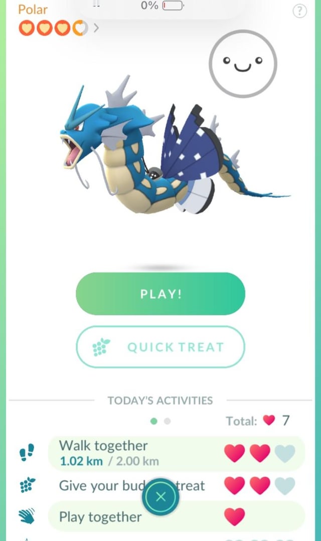 Or more accurately, my vivillon grew a tail??? Anyone else’s buddy randomly become a hybrid today?? It doesn’t show up in raids or on the map but it won’t go away on these screens 😂 yet another beautiful graphics error from the update I assume. I haven’t had a gyarados as a buddy since buddys became a feature!