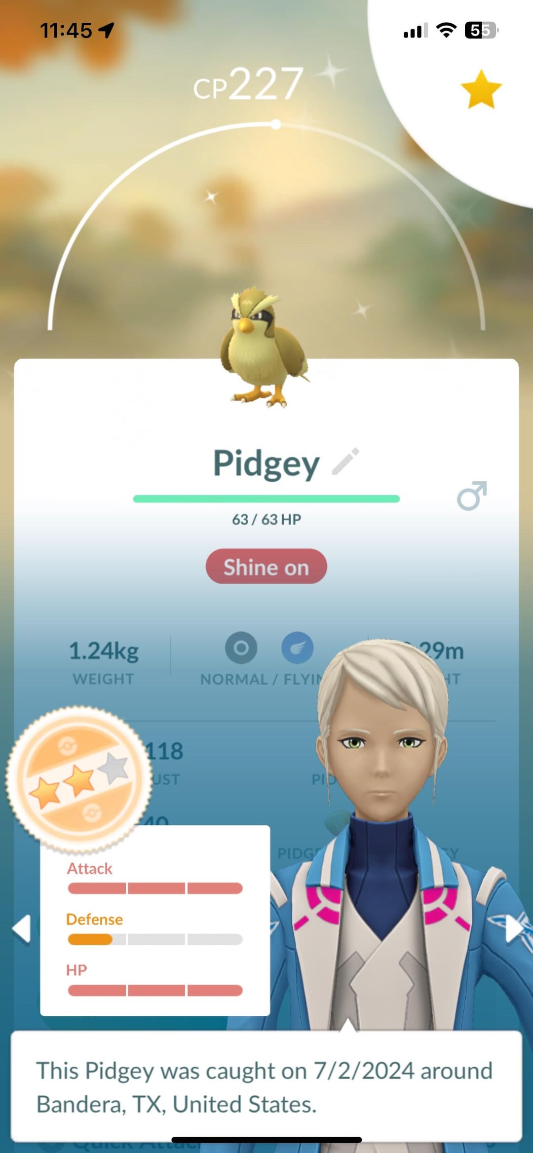 What luck. After I had people bail from my Ho-Oh raid I decided to not talk smack and just enjoy losing my 2 charged attacks using only 3 players. This happened later. Soon as Pikachu hour ended. Been searching for Pidgey for a hot minute!! Evolve it?