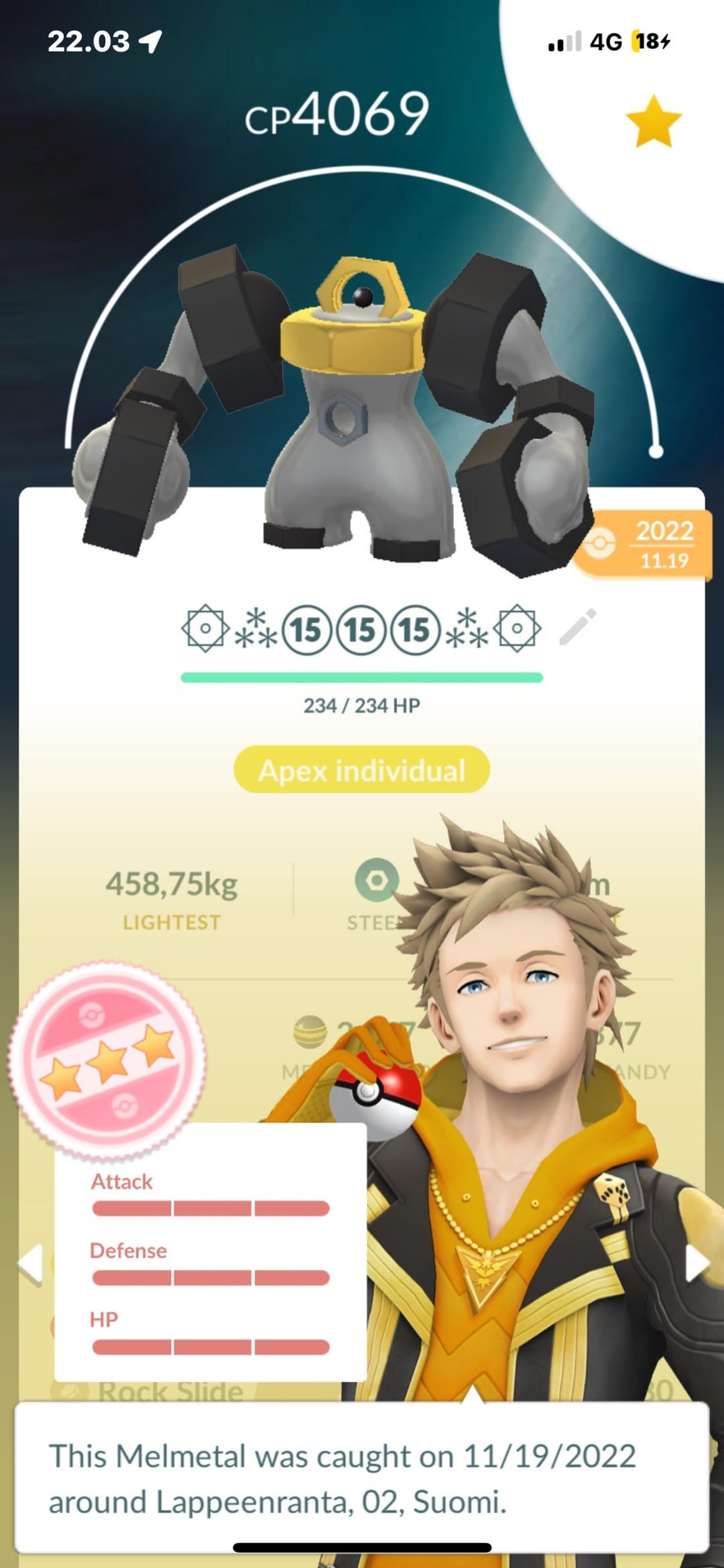 Finally managed to max out my hundo melmetal.🔥 by Agitated-Pop6142 Write A CommentYou must be logged in to post a comment.