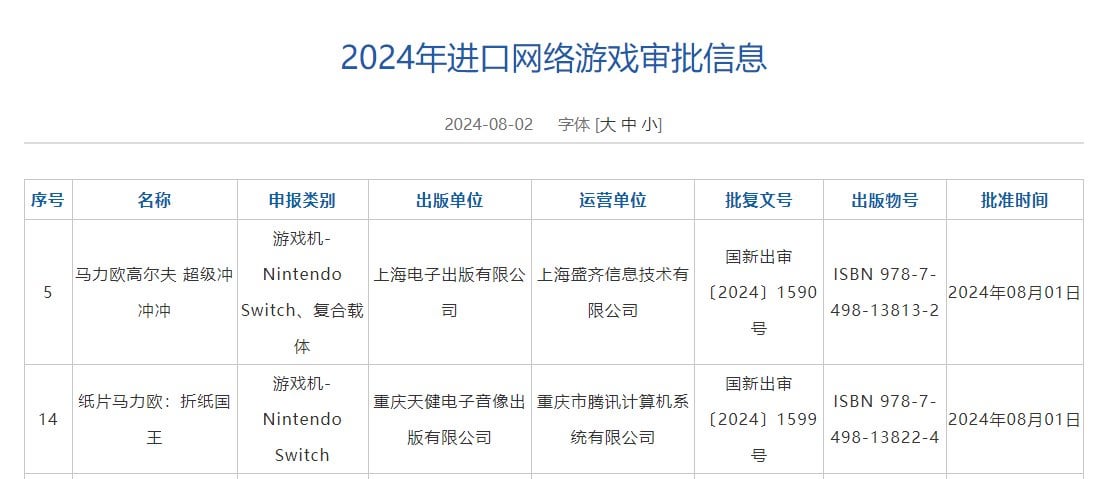 Mario Golf: Super Rush and Paper Mario the Origami King approved for Mainland China by No-Drawing-6975 Write A CommentYou must be logged in to post a comment.