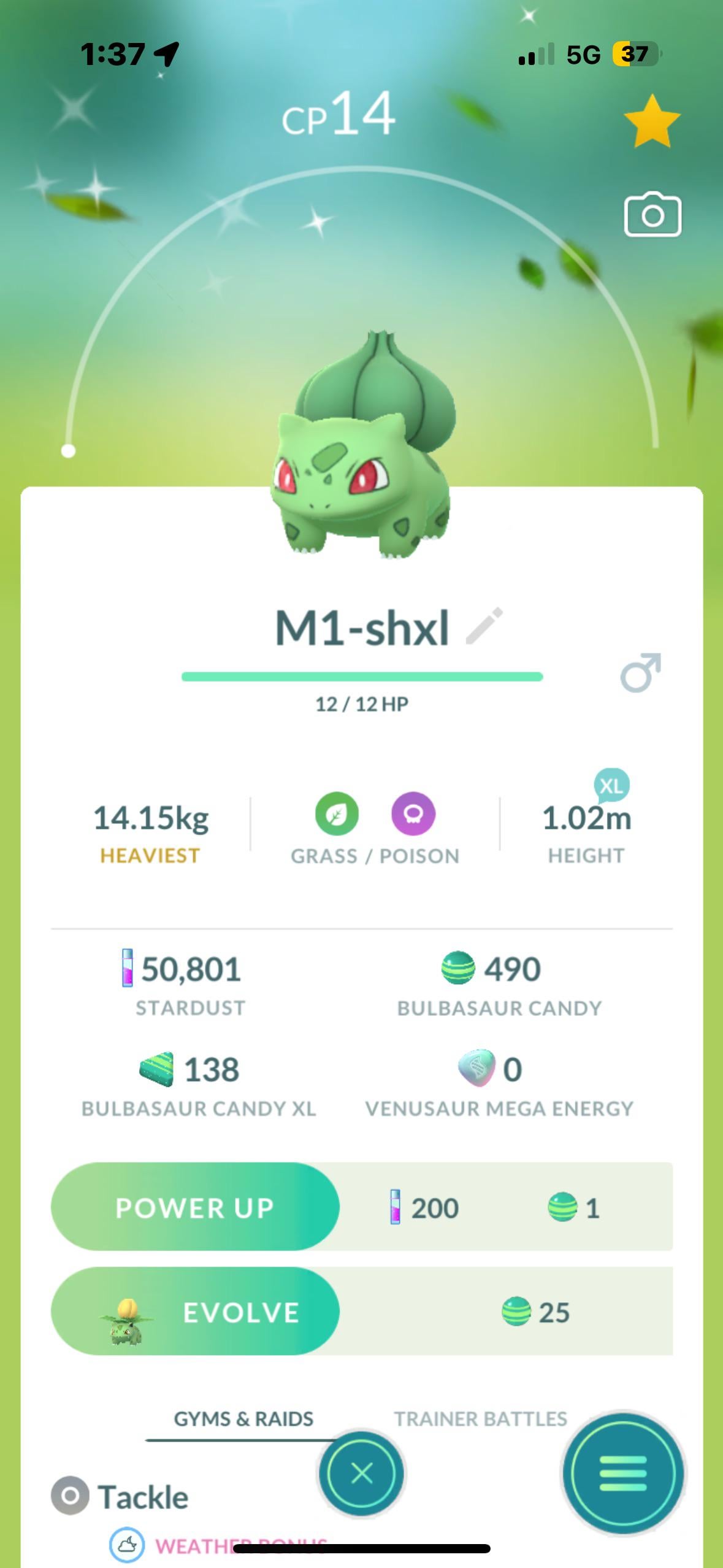 Looking at my bulbasaur family to prep for the upcoming Wild Area event evos and realized this shiny checks a few boxes and wanted to share