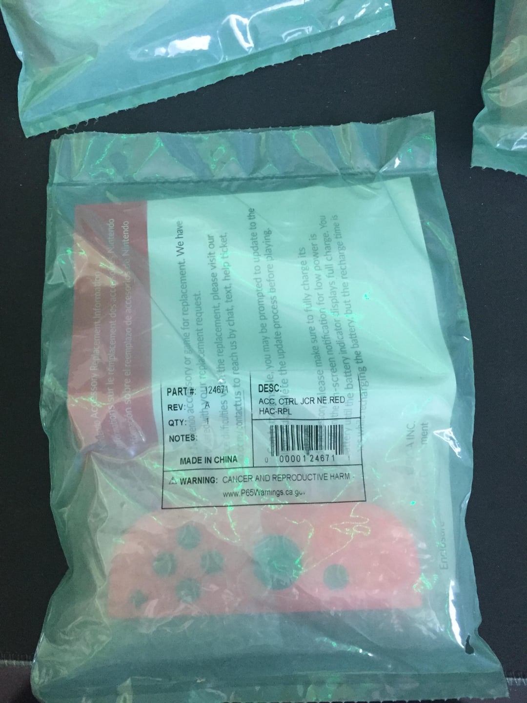 The new packaging now has a green plastic bag around it and a small piece of printed paper giving us information about the replacement information of the joy-con. You can compare this new packaging to the old packaging by looking at the last photo. not sure why they did this, but I'm guessing it has something to do with the release of the new Switch 2.