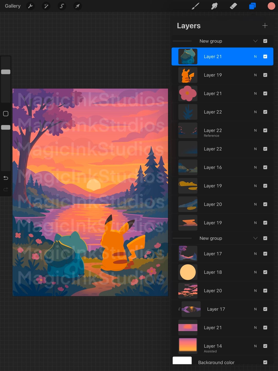 Just finished this piece, since a lot of you requested another one, I’ve done my take on Pikachu and Bulbasaurs Friendship! The background mockup is just to make the post look more polished — I grabbed it from mockup-design.com. Hope you like it! I’ve also attached the Procreate file to show it’s 100% OC!