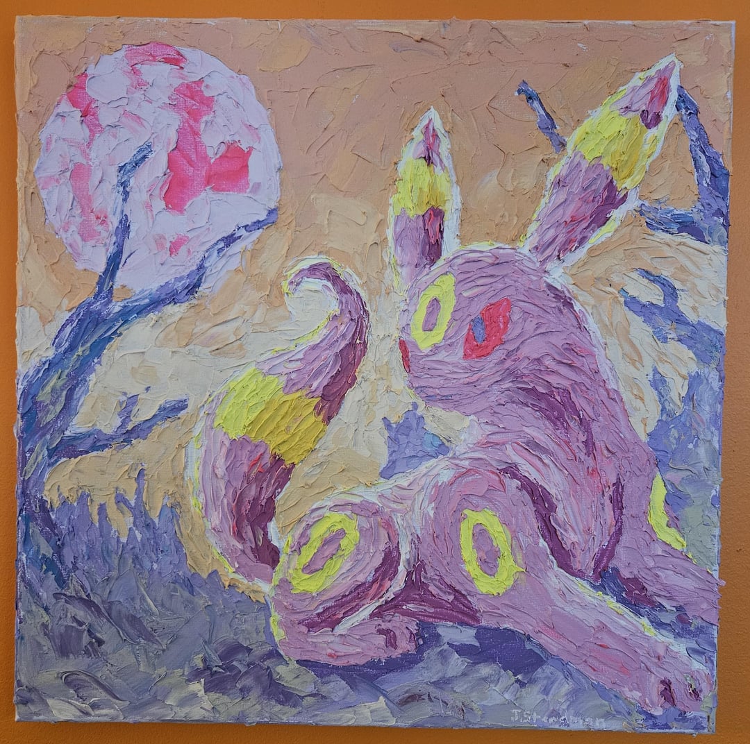 Umbreon at night. Acrylic on canvas 14″ x 14.
