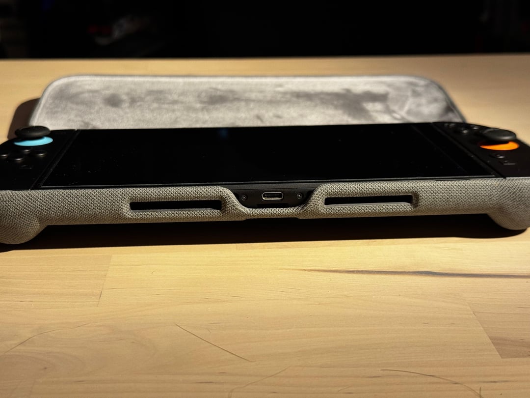 Having it in person, it's fine. This is almost exactly what I wanted. The grips around the Joycons are larger and the kickstand is independent of the console, but it otherwise feels like the Force Field OLED with worse materials, as expected.