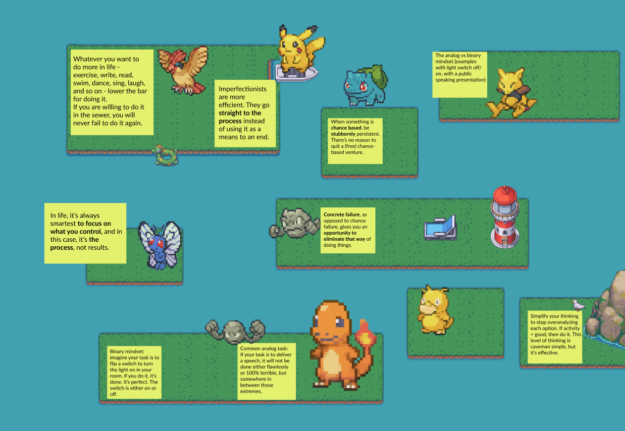 One day I had an idea: instead of โ€œboringโ€ notes and mindmaps, I made a little tool that organizes them into game-like 2D worlds. Each world (usually – a single topic) has islands populated with objects and characters. They help me recall the idea from the notes by leveraging my visual memory.