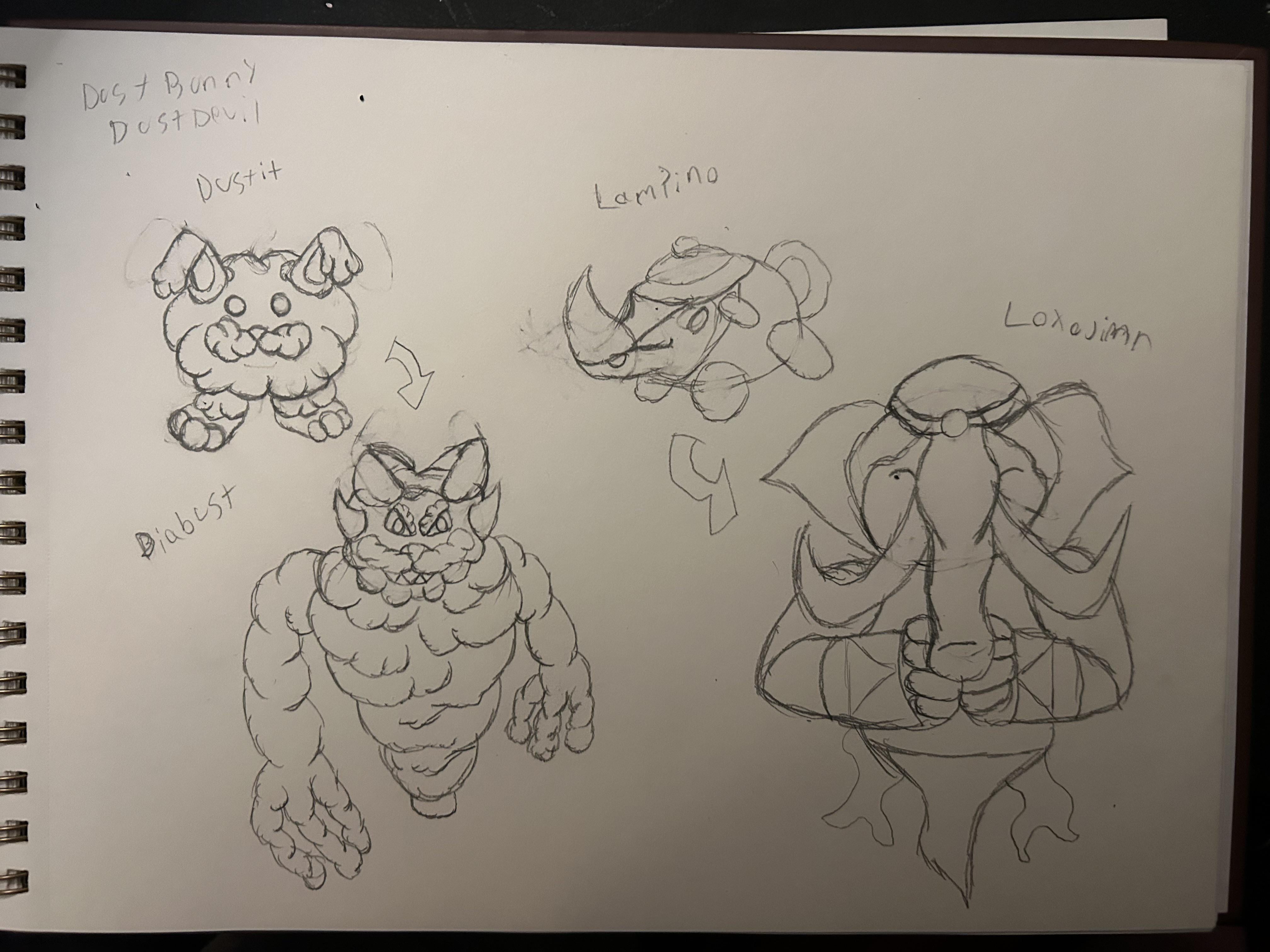 Dust bunny/devil just felt like an easy and dumb choice since dust bunny pretty obvious, not seen many become dust devil kind of creature so I made one myself