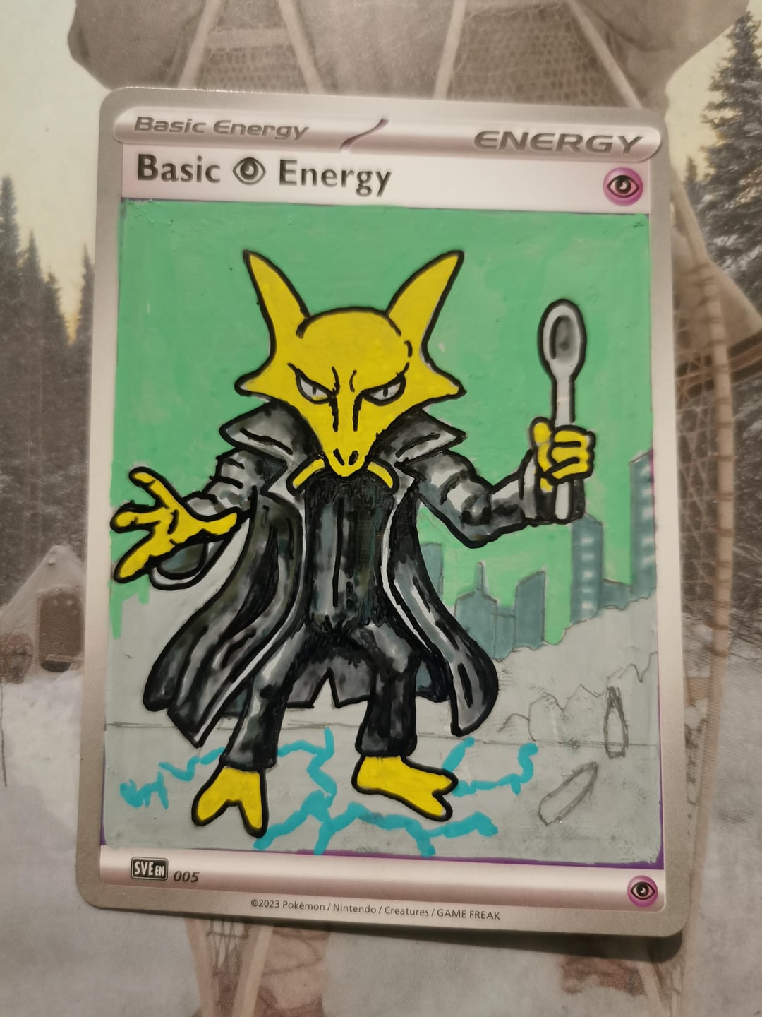 My ideas are getting out of hand now… 😂😂 Here’s Alakazam straight out of the Matrix, trench coat, spoons and all! Can’t help but keep pushing these cards into wild new themes — Pokémon meets movies, games, and anything else my brain throws at me. Another one for the 151 art collection ✅✨(oc)