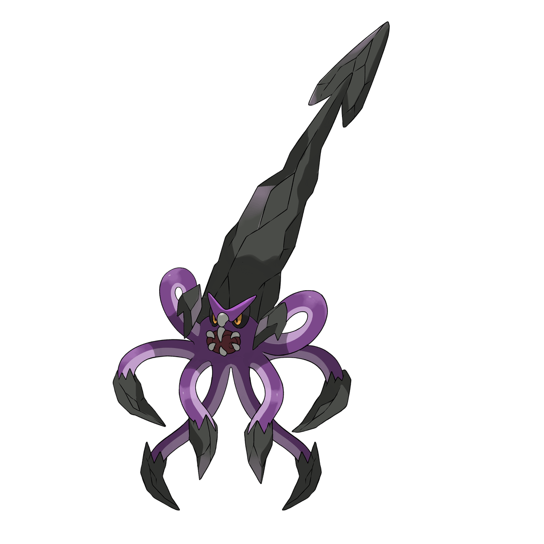 The evolution is Kalafuri, which is now a water and dark type. If a Kalawori is lucky enough to gain enough experience, they evolve into this monstrosity. Their shells have now formed into the shape of a harpoon which they use to propel themselves at high speeds to attack enemies and even take down ships. Their name comes from calamari ans fury, and the reason their names start with a K is because they're really kraken-like. Kind of a stretch but spelling their names with a K instead of a C is more interesting
