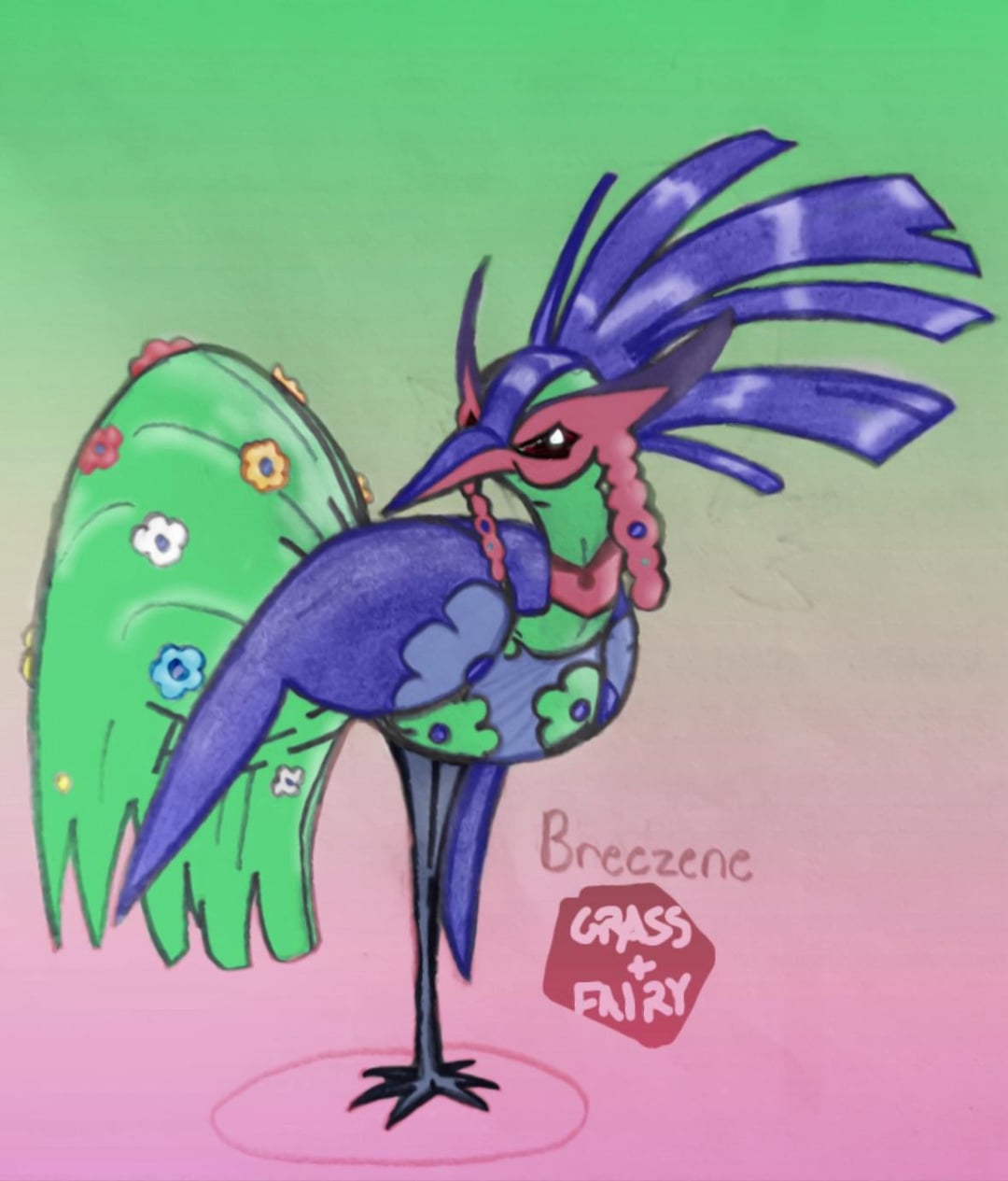 Breezene: Grass/Fairy – “Known as the ‘Aunt of Pokémon’, Breezene are often seen caring for lost Flabébé that are found out in solitary fields of flowers.” | “Breezene will foster lost Flabébé until they are fully evolved into Florges. In return a Florges will leave them with a beautiful flower. The amount of flowers will tell you how many Flabébé were fostered by them.”