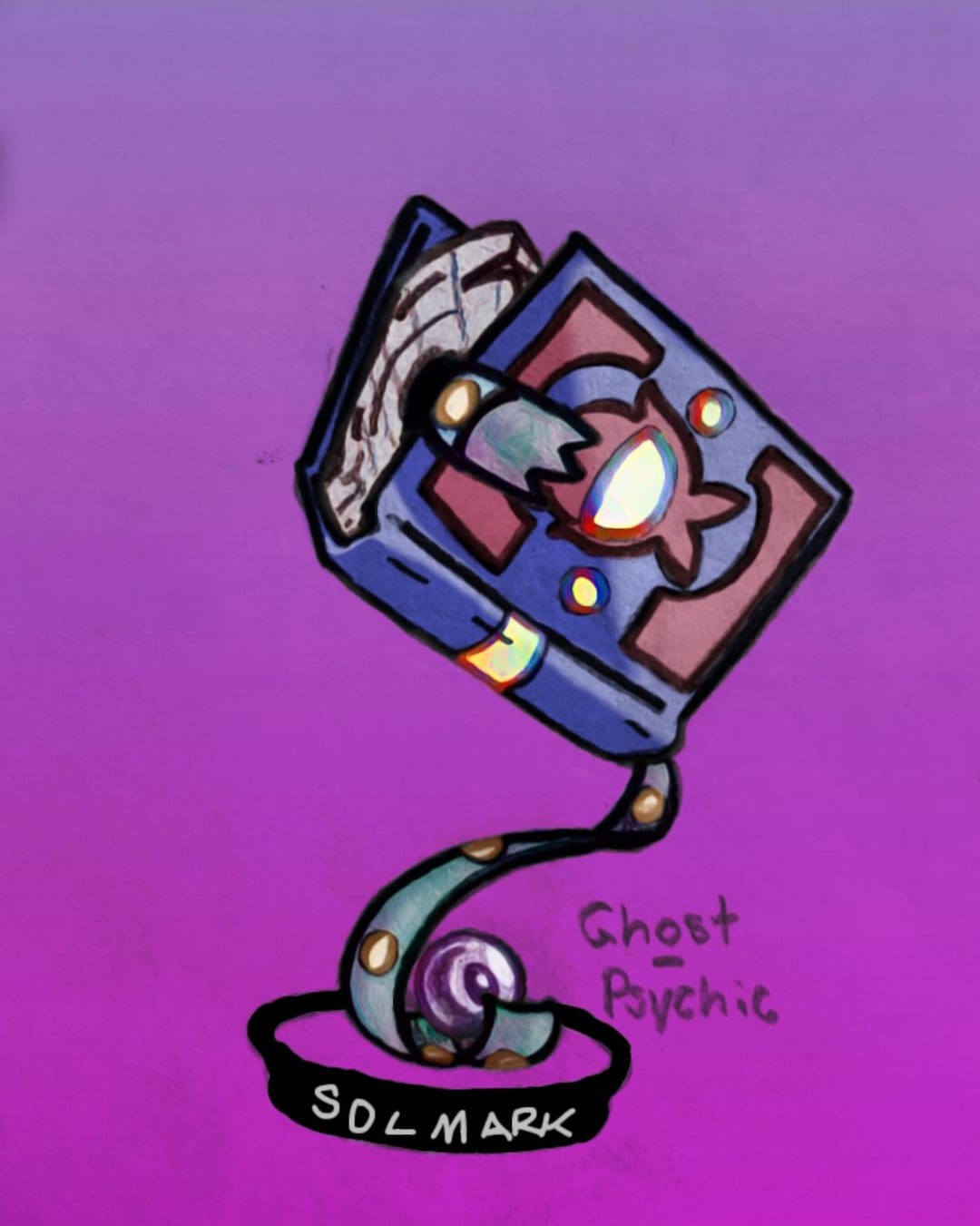 Solmark: Ghost/Psychic – “Believed to be spirits of people that have passed in the middle of reading their favorite book. The Pokemon aren’t the books themselves but rather the bookmarks.” | “Solmark are cursed to only be able to reread the pages they are marked between for all eternity unless moved to another by someone, although touching a Solmark results in the person immediately passing out afterwards.”