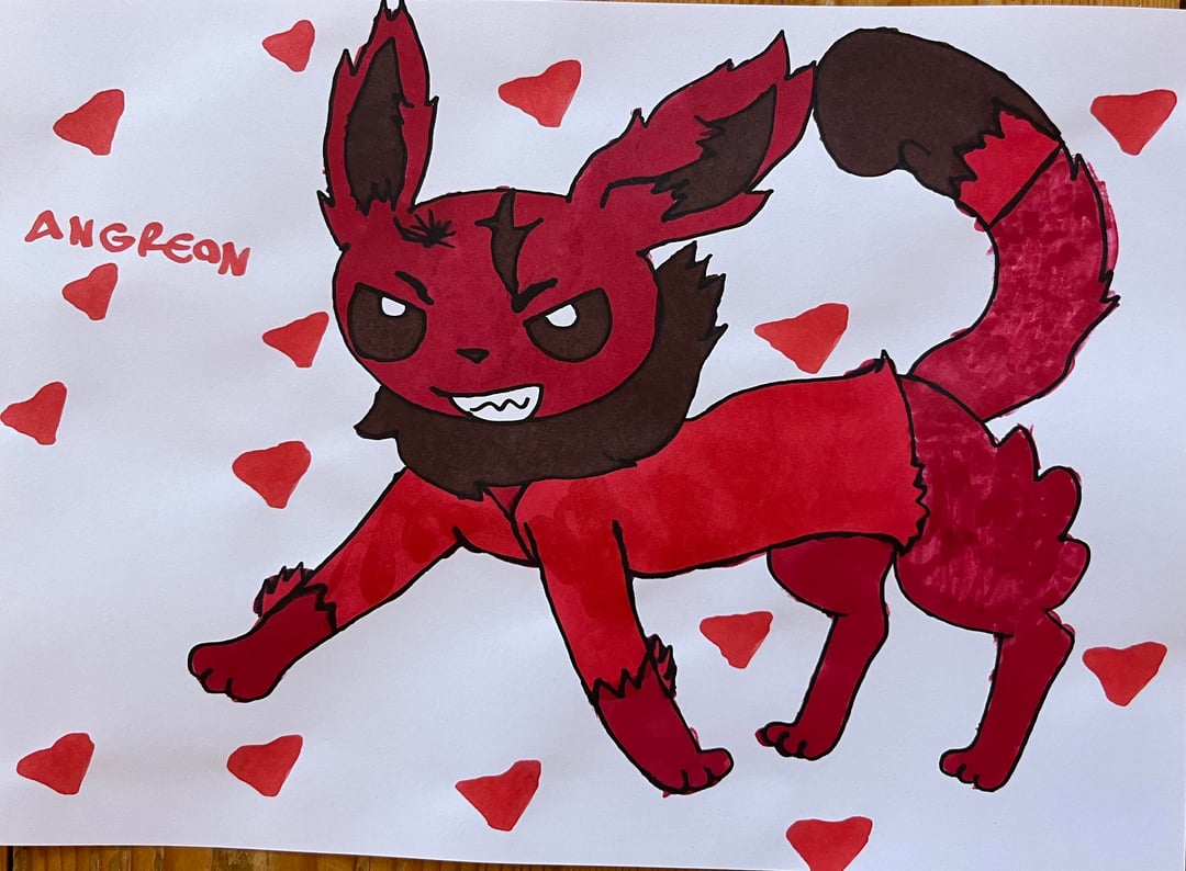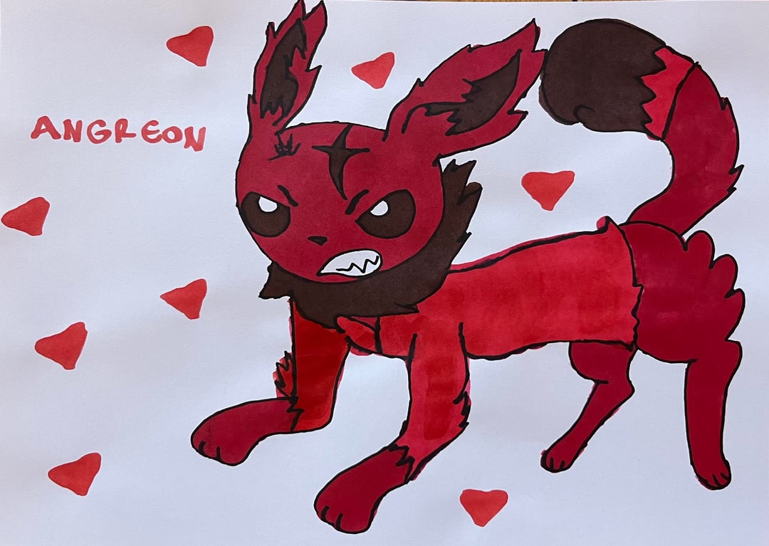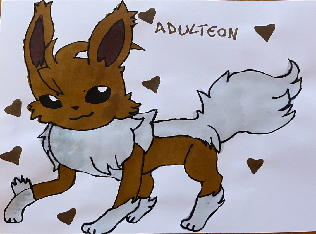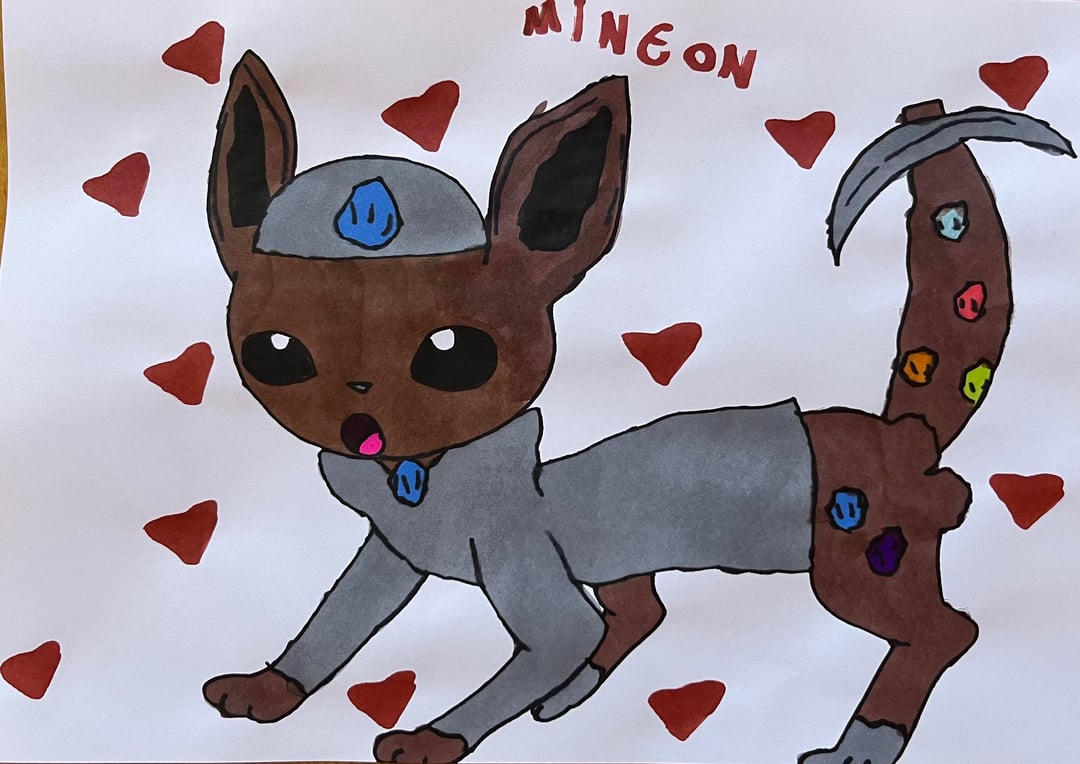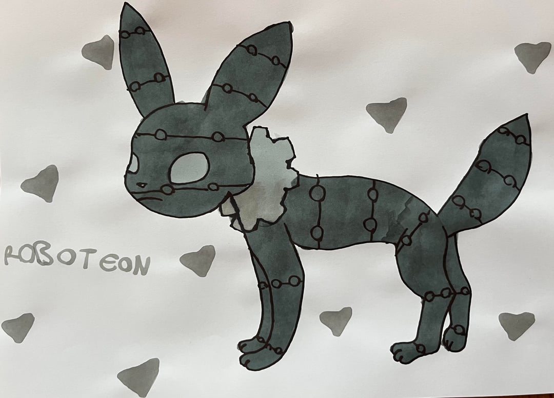 My younger sister loves to draw Pokemon and as a fan of Eeveelutions, she came up with her own designs for missing types of Eevee evolutions.