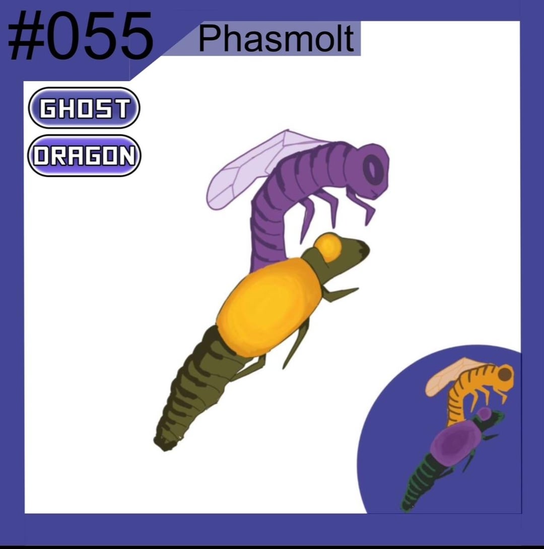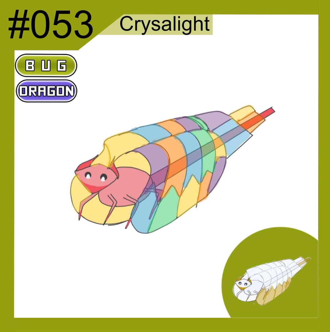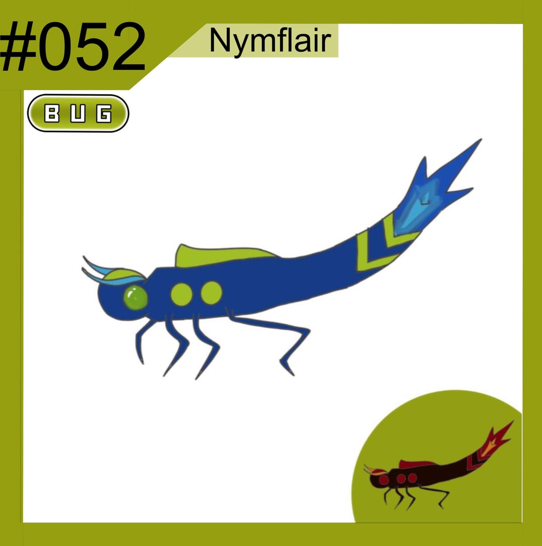 Nymflair can either revolve onto Crysalight or Phasmolt depending on the time of day Crysalight is a very weak pokemon so it uses its Glass wings to protect itself and Phasmolt is infected by a parasite