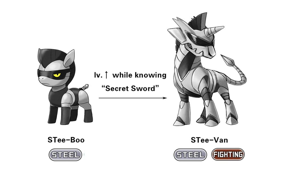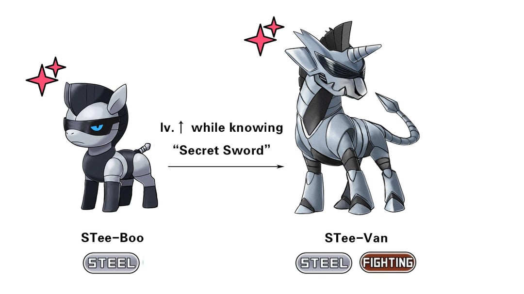 The evolved form of Stee-Boo, Stee-Van would learn secret sword at level 44, and its entire body underwent an evolutionary reaction within 0.05 seconds. Its body is now covered in metallic armor that glows in the dark, and its size has become even more imposing.