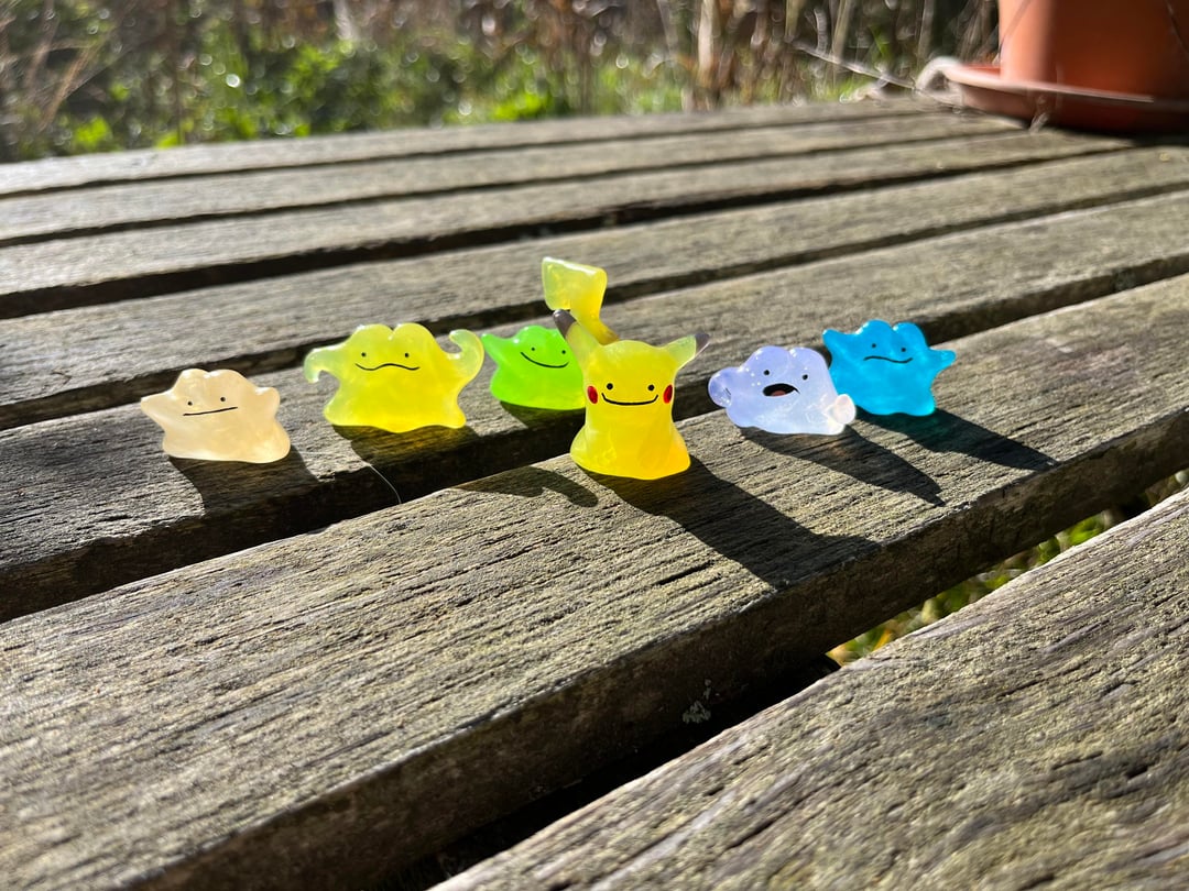 Some of you may already be familiar with my ''Gummy'' Ditto thermoplastic sculptures, as I've shared a few posts with multi-coloured Dittos with all kinds of poses and facial expressions.