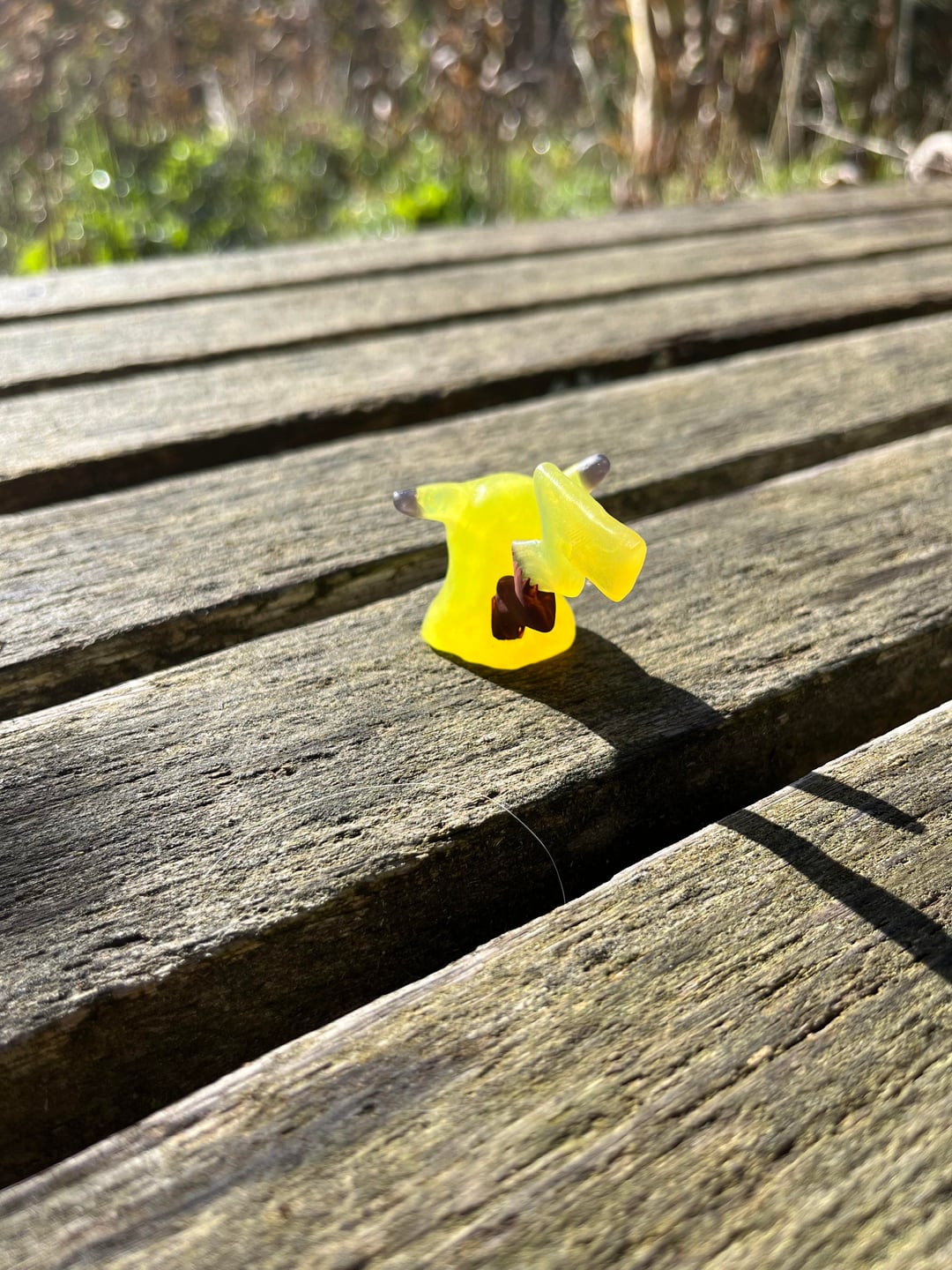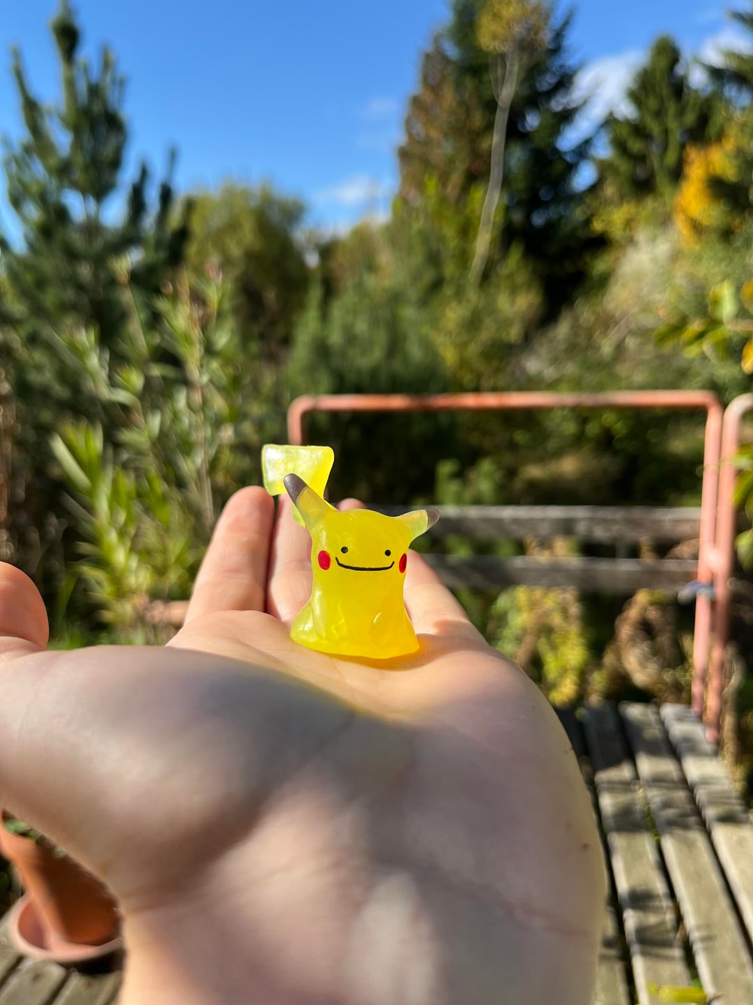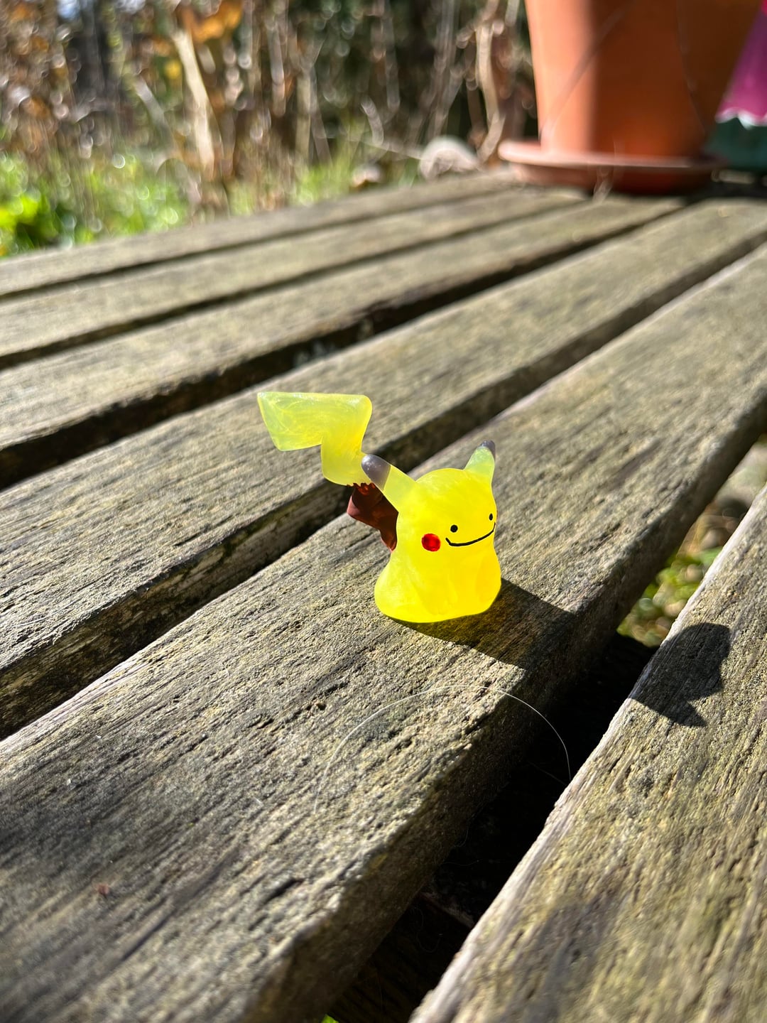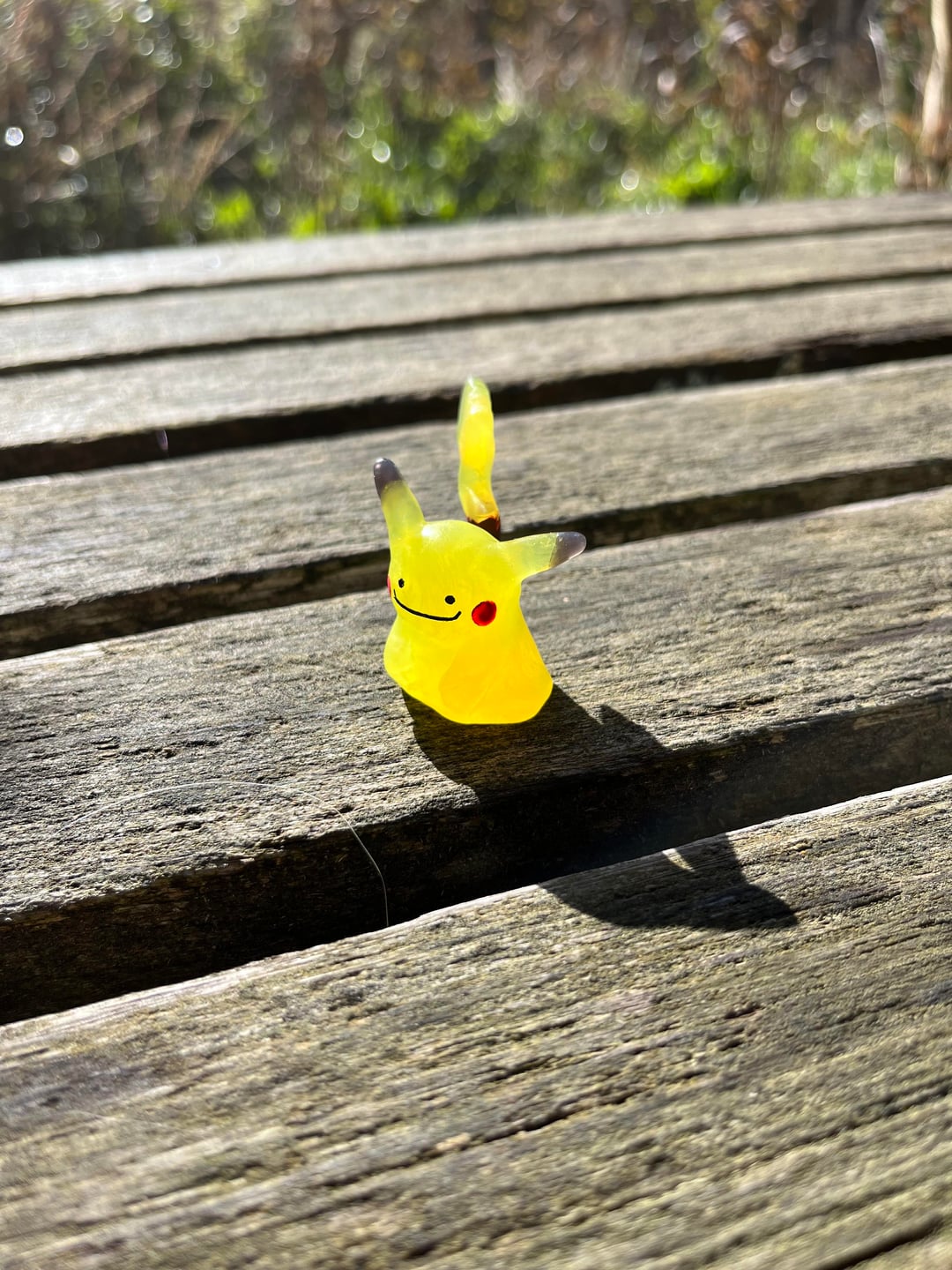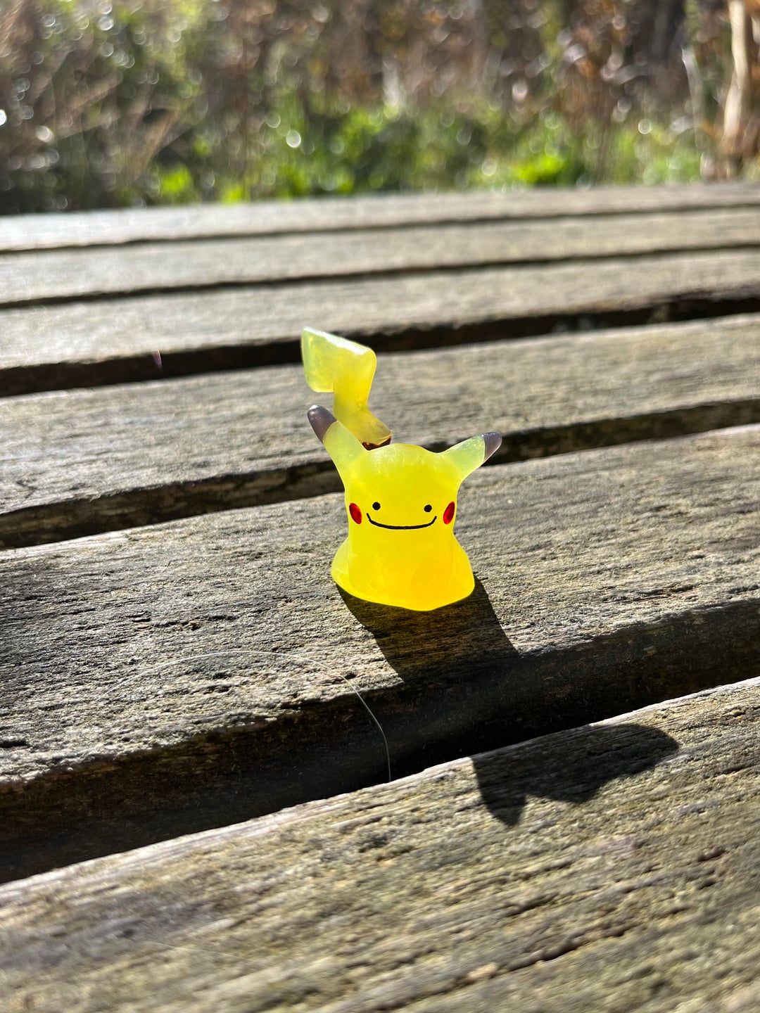 Yesterday I began experimenting with making a Ditto who transformed into a Pikachu. I sculpted this one of thermoplastic called Oyumaru just like the Dittos before and it has hand painted face and the brown part of its tail.