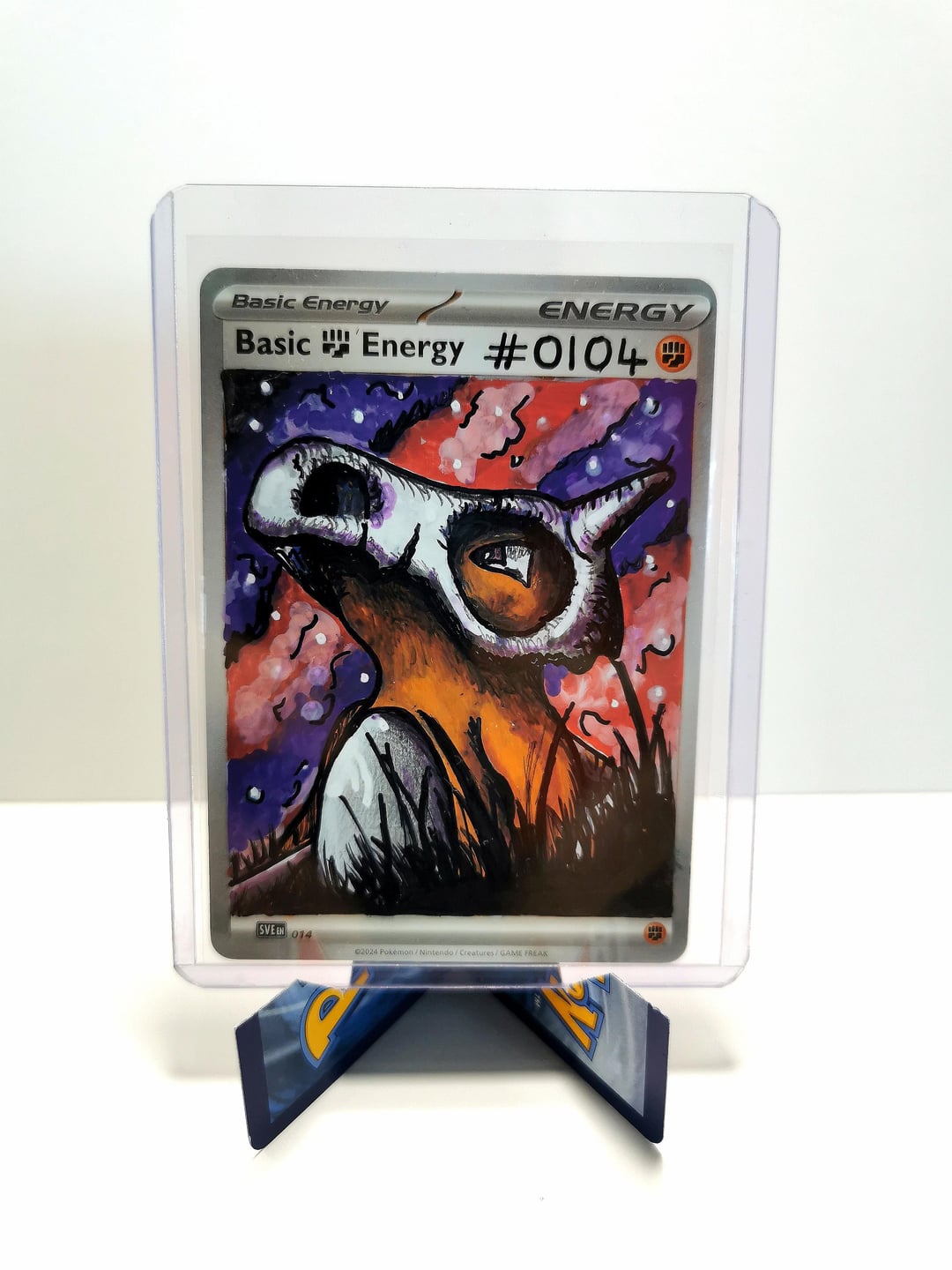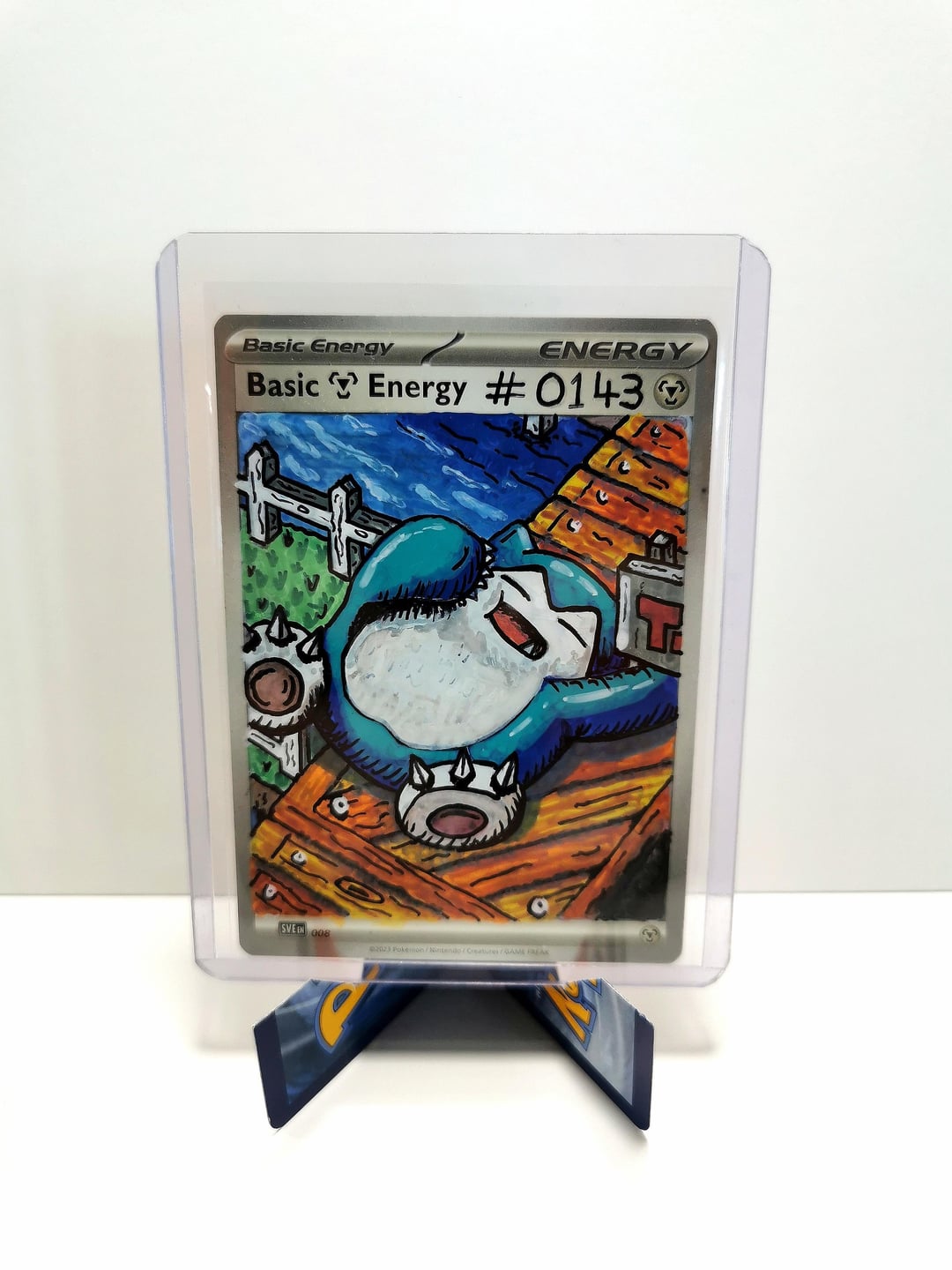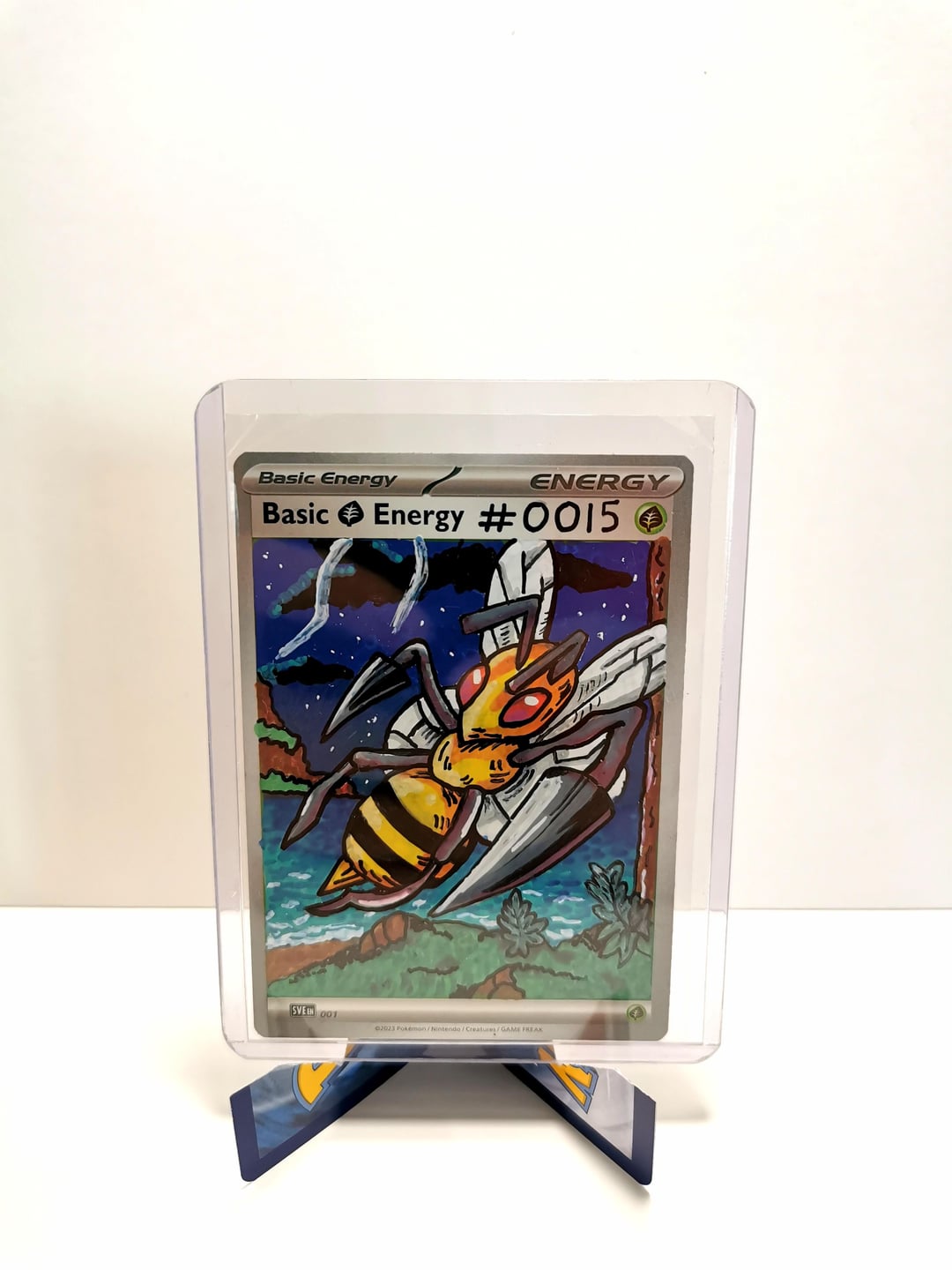 Each card is a one-off piece, drawn straight onto real energy cards, with full backgrounds to bring the scene to life.