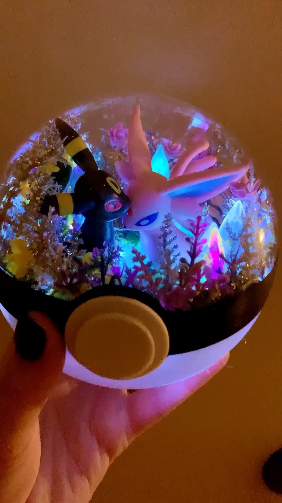 i wanted to share this espeon and umbreon terrarium i made for someone🌸 , i love making little pokémon worlds i've been doing it for years and i truly enjoy the happiness it brings to others .☺️