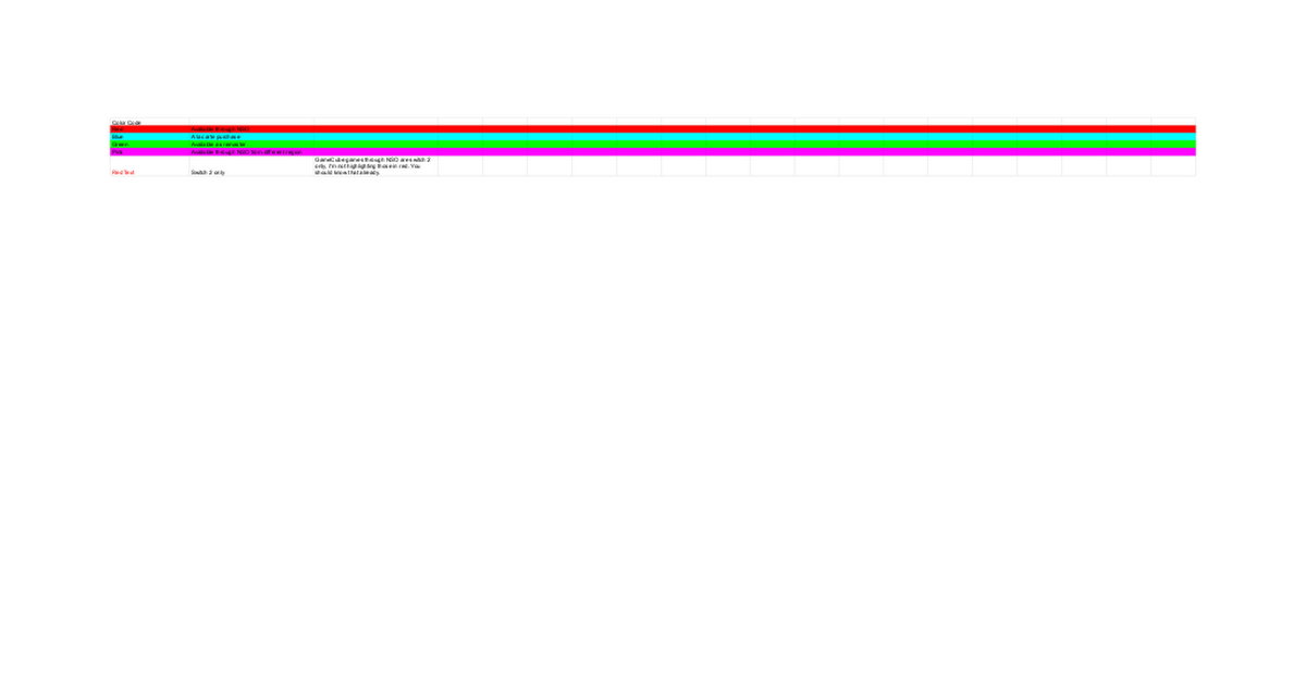 • Pink = Available through NSO from a different region