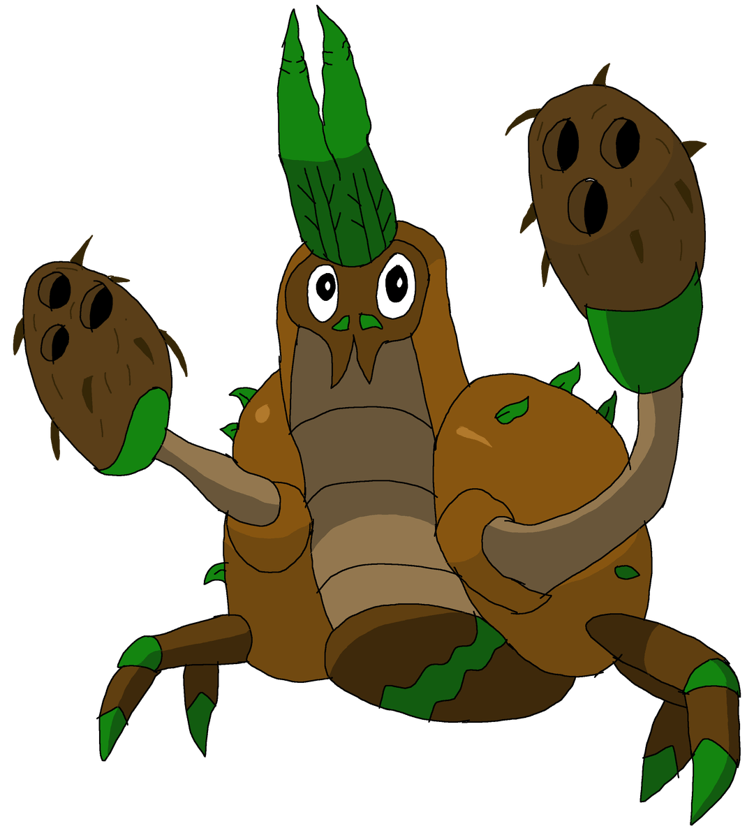 "A species which eerily resembles the alolan Crabrawler. Its coconut looking pincers often fall off when they sleep upside-down on branches."