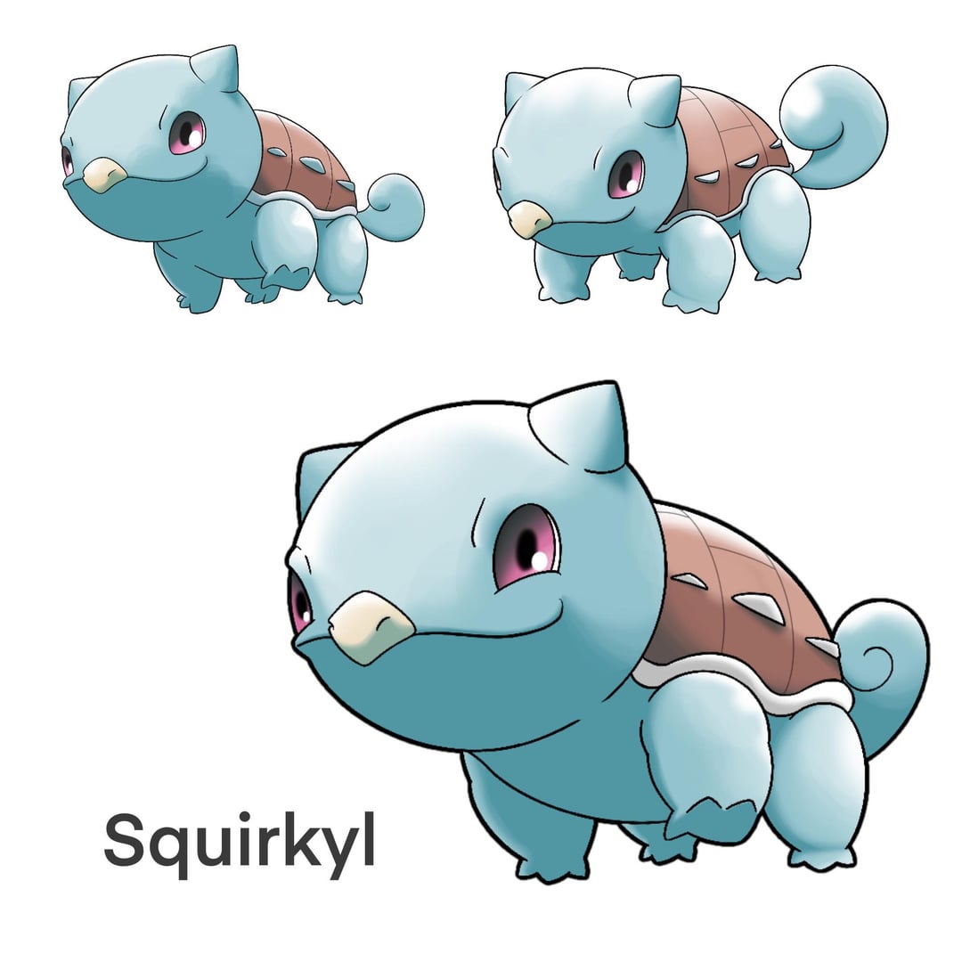 Squirkle and Charaptor look a little like digimon. I think you should make their eyes a little bigger. But I love the concept. They look great! Convergent starters is something I really hope we see in the future