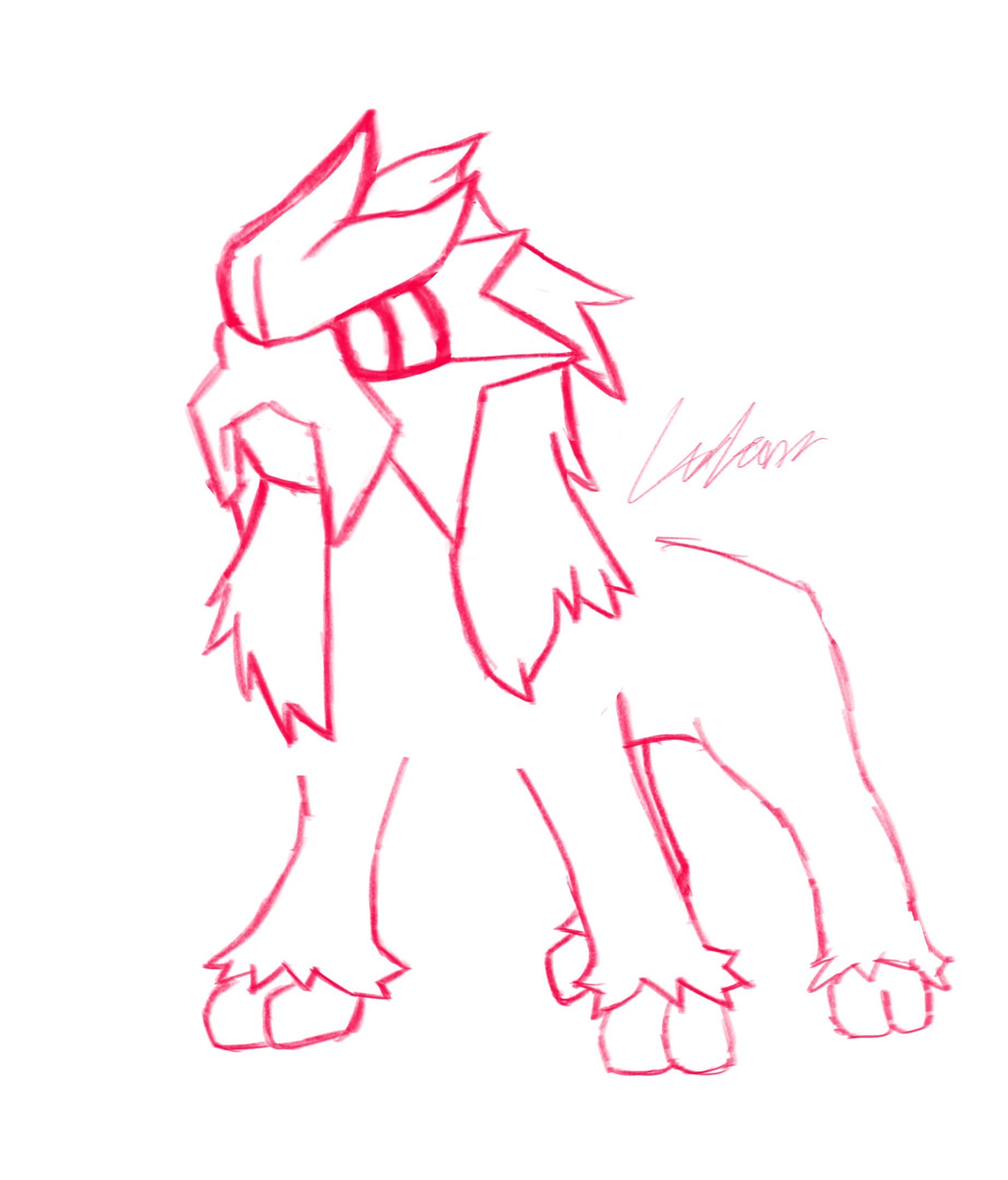 I’m not really that good at drawing yet, but here’s a little sketch I started of a basic pre-evo for Entei its nothing Special and nowhere near finished, but I’d love to hear any tips or criticism