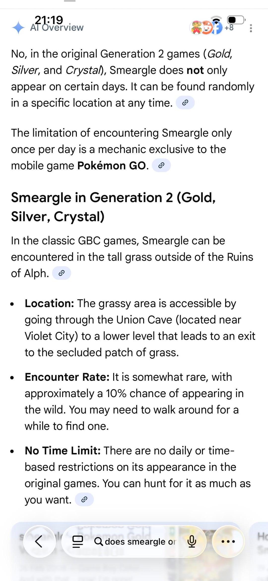 I’m having trouble encountering Smeargle in Pokemon Crystal version. I’m sure I’m in the right location and everywhere I look online I’m reading that Smeargle appears all day, every day. I’ve encountered probably 100 Natus, 10 Woopers and 5 Quagsires and still nothing. Am I missing something? Or just Veeeeery unlucky? Cheers guys ☺️☺️☺️