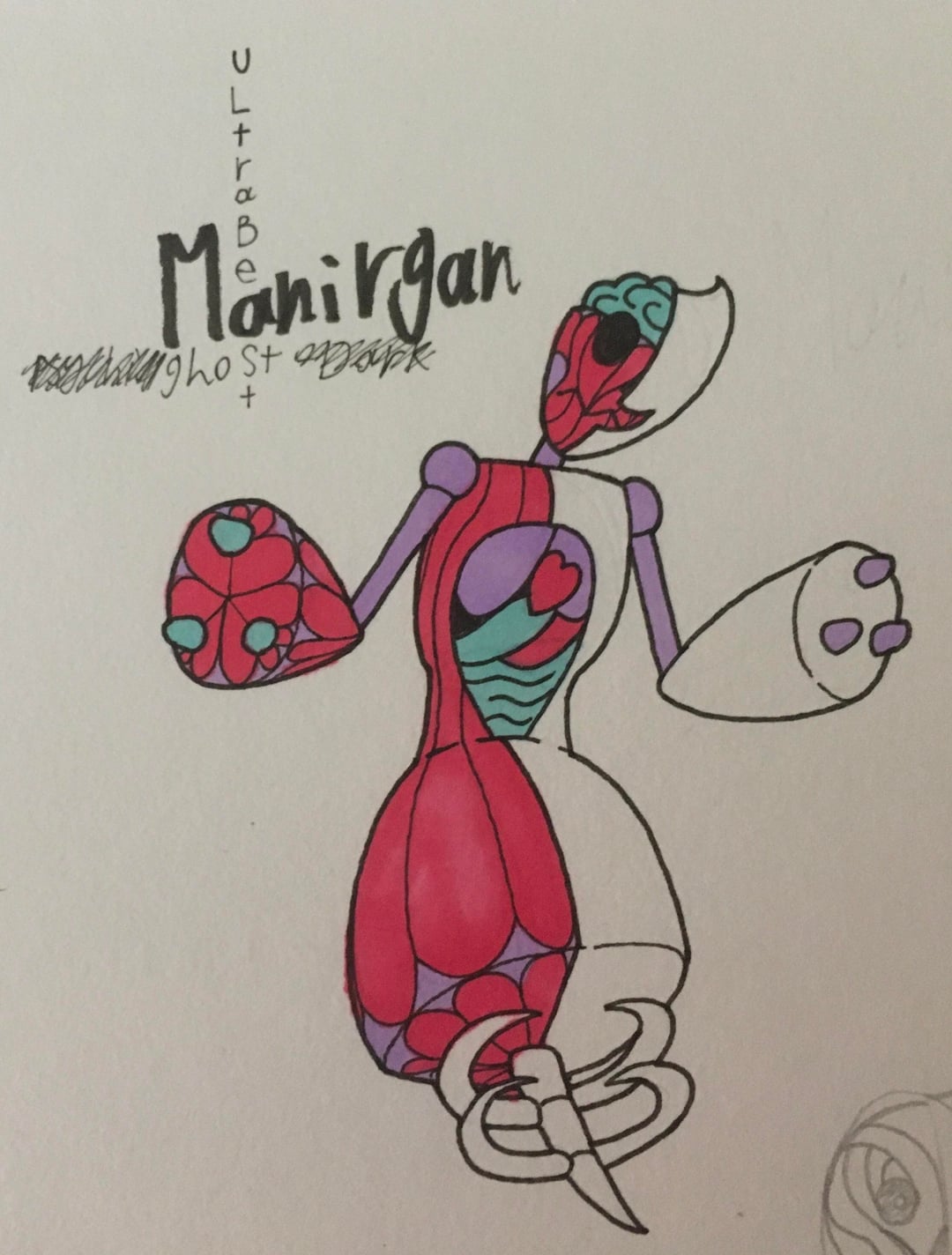 The gut dummy Pokémon. Seemingly from a universe comprised of spirits, Manirgan “perfectly” mimics the life forms on earth. Look, it even has a similar internal structure as us.