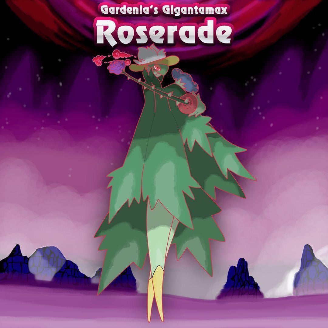 - Roserade: based on jousting, centaur, masquerades, and royalty(art by Dennis Fuhrmann). Gmax move: Gmax thorny whip.