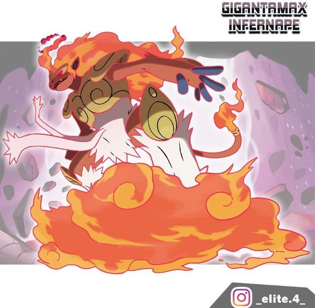- Infernape: based on Sun Wukong, orangutans, and Ozaru from DB(art by elite.4). Gmax move: Gmax solar flare.