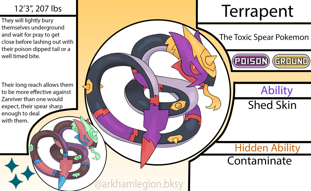 - The evolved form of Seviper once it learns "Toxic Spear", based on Black Mambas.