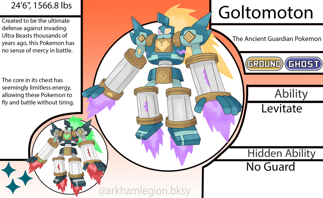 - The evolved form of Golurk when given the "Infinite Core" item, based on Golems and Iron Man.