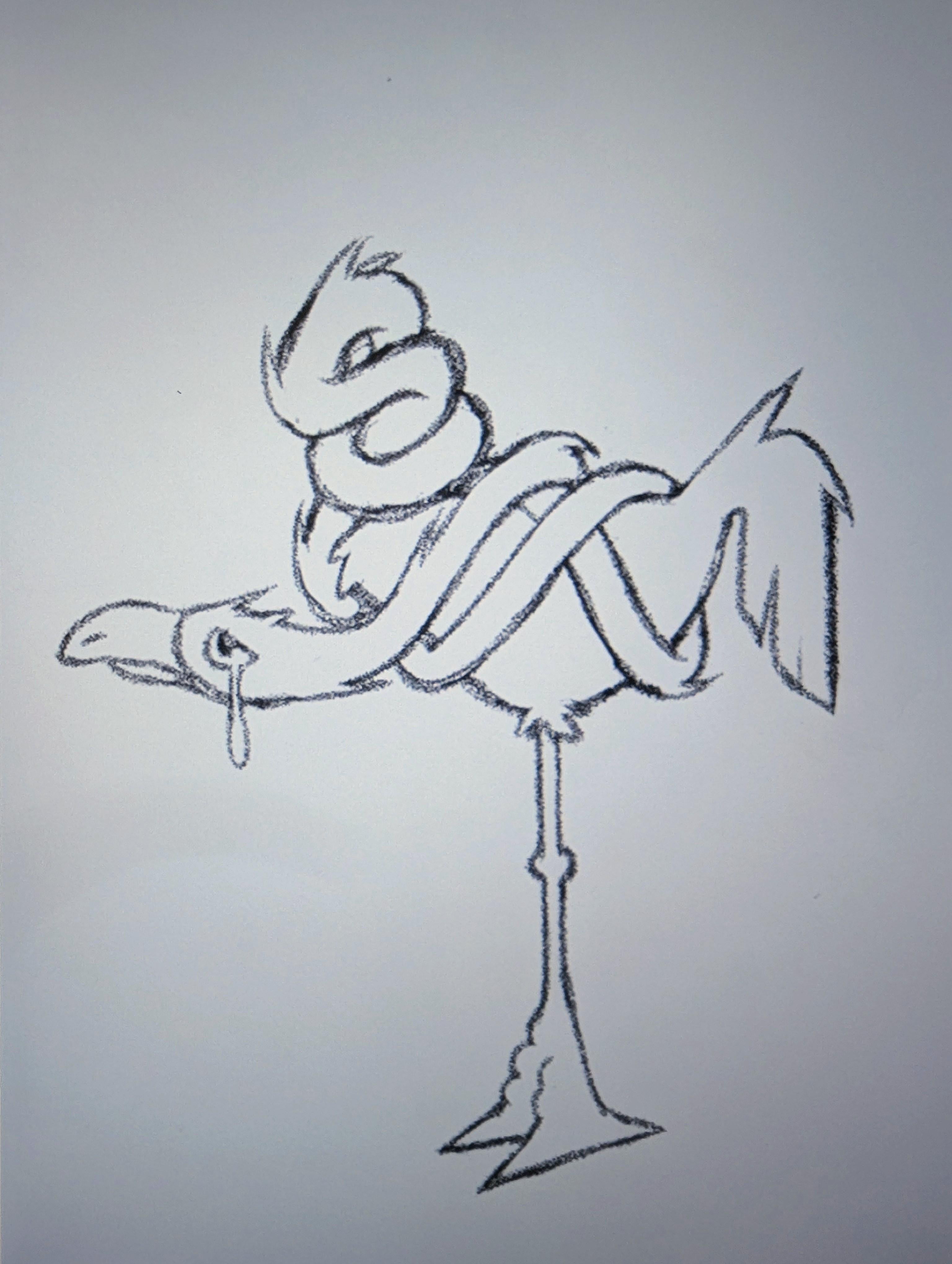 โ€‹And there is a sad flamingo whose neck is all tangled up.