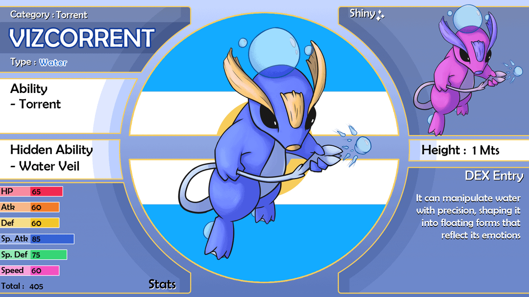 The final starter for my region, it's based on a vizcacha (the rat not the insect) and it serves the role of an illusionist, it can create illusions with the water and its tail serves as a magic staff. by Firm-Peach-7273 Write A CommentYou must be logged in to post a comment.
