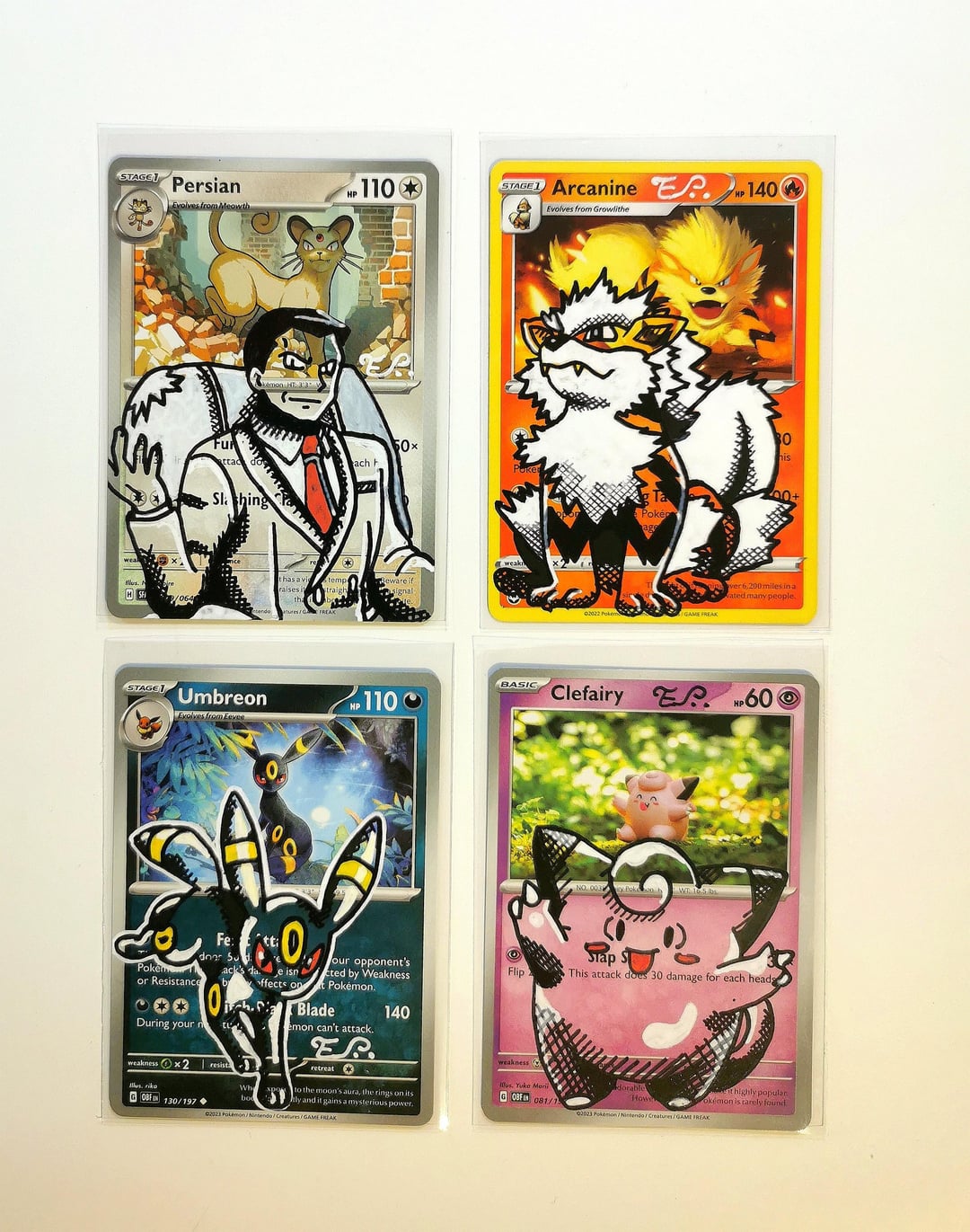 Tried to mix a few different vibes — Giovanni-style Persian, a chunky Clefairy, bold Arcanine, and an Umbreon that came out way cleaner than I expected.