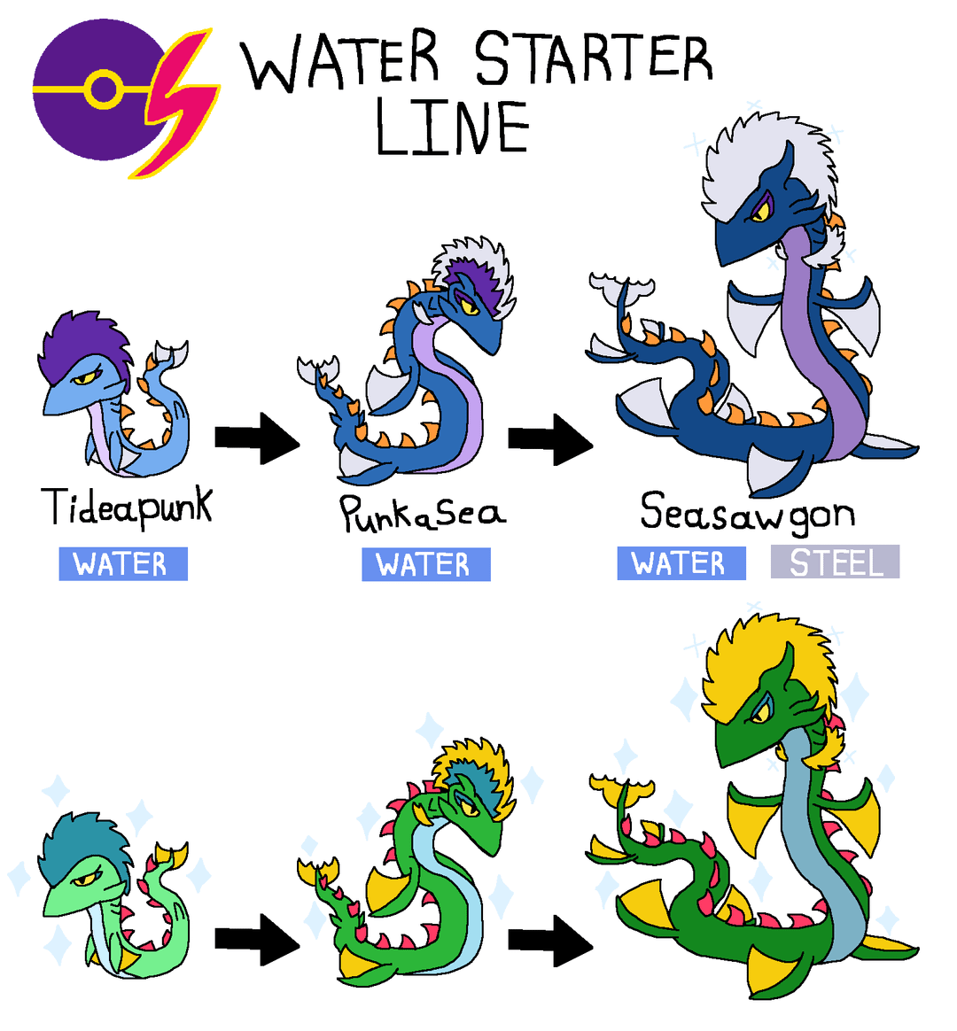 - Water Type Starters (Buzzsaws + Sea Monsters like the Lochness Monster + Punk)