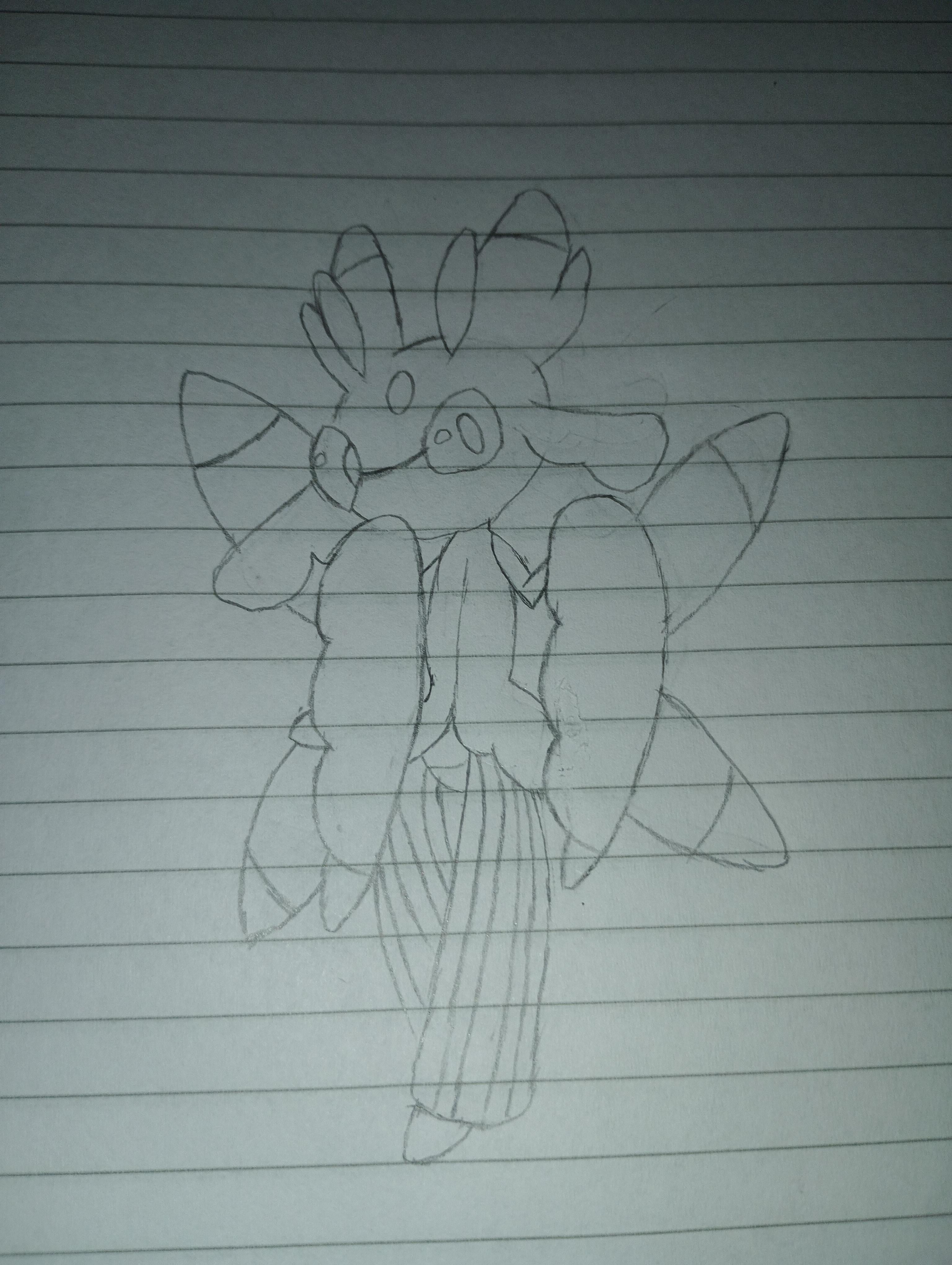 I'm working on a sketch of a Midday Lycanroc/Lurantis fusion for the fan game Infinite Fusion. Idecided to draw Lurantis first and then add the Lycanroc parts. How is it so far? I followed a guide, but I accidentally made it a little bit in a chibi art style. I made this