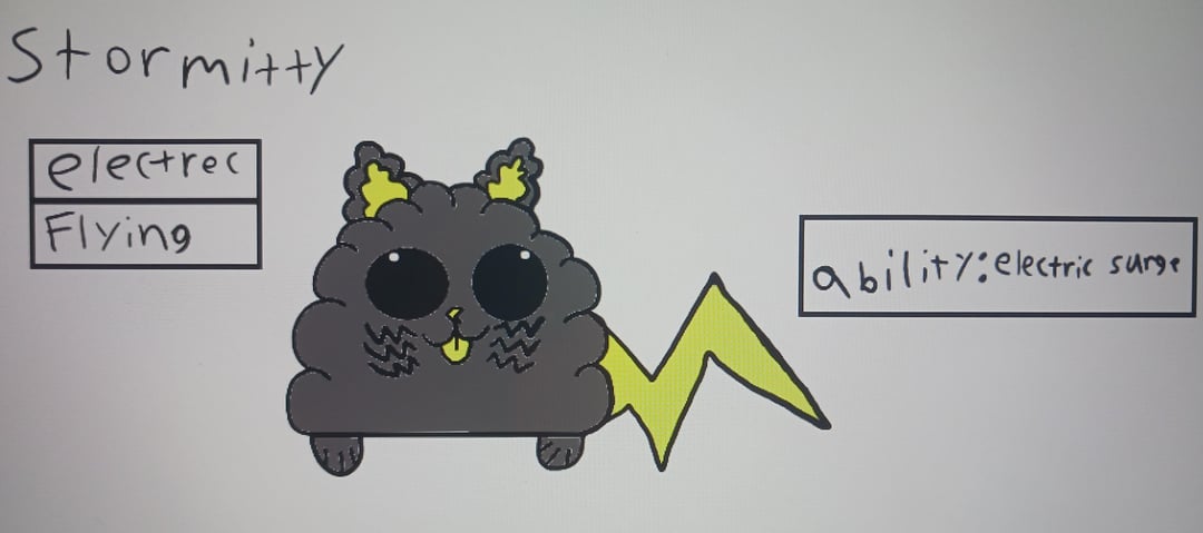 I tried to evolve this cute cat thunder cloud fakemon of mind but ended up making a Ursa Major constipation fakemon some how?