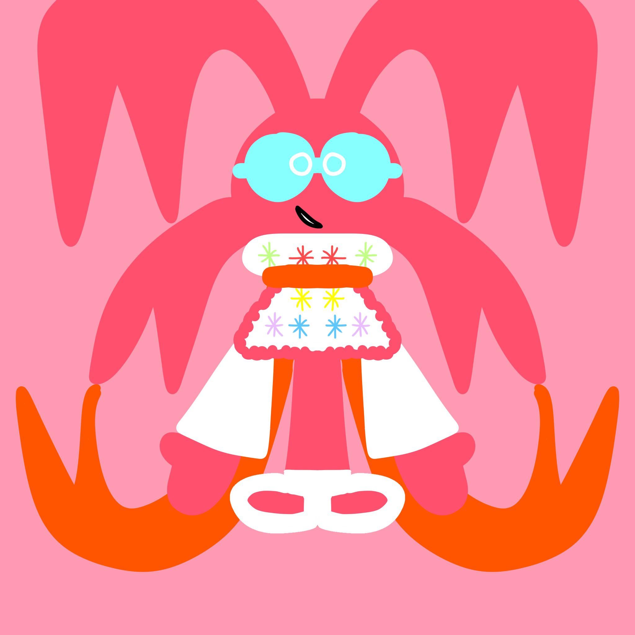 It doesn’t have a name (also I don’t remember if I shared this already or not but I don’t think so) yet but the sparkles on its “dress” glow at will (I made this before Catchette). I tried to draw those flat shoes (it’s not actually wearing shoes) that kinda look like ballerina shoes (I don’t know the name). The glasses are its eyes and the only thing you can actually take away from it is it’s ribbon scarf which acts as extra limbs (I mean the ribbons on its head do also but nevermind that-).